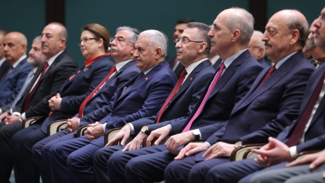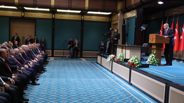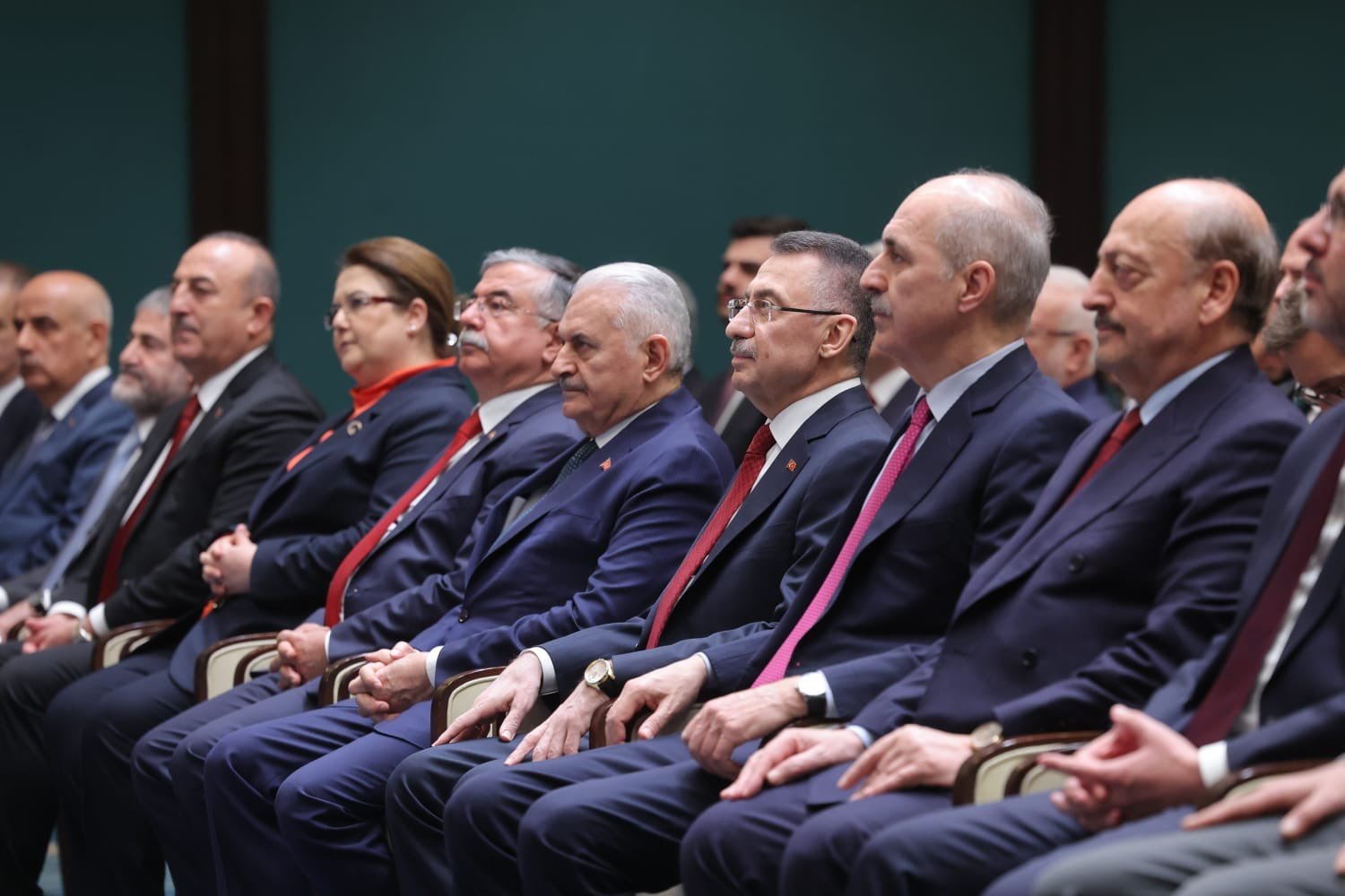 "Sadece son 1 haftanın siyasi gündemi dahi tek başına bu tehdidin ne kadar reel, büyük ve endişe verici olduğunu göstermeye yeterlidir. Ülkenin bir bölümü yaşadığı can kayıplarının ve yıkımın altında adeta feryat ederken öteki taraftaki bir kesimin kendi siyasi hesapları uğruna sergilediği aymazlığın faturasını milletimizin tamamının sırtına yükleyemeyiz. Kabine toplantımızın ardından yaptığımız açıklamada da belirttiğim gibi Türkiye'nin ne vakit kaybına, ne dikkat dağınıklığına, ne enerjisini gereksiz yere harcamaya tahammülü vardır. Depremzedelerimizin yaralarını sarmak, felaketin tüm izlerini silmek, şehirlerimizi yeniden inşa etmek, üretimi ve istihdamı tekrar yükseltmek için ülkemizin seçim gündemini bir an önce geride bırakması şarttır. Bu anlayışla ve Anayasa'nın bize verdiği yetkiyle daha önce açıkladığımız seçimleri, 14 Mayıs tarihinde yenileme kararımızı uygulamaya geçiriyoruz. Biraz önce imzaladığımız kararın Resmi Gazete'de yayımlanmasıyla birlikte YSK seçim takvimini hazırlayıp ilan edecektir. Ve bugün mükerrer sayıda yayınlaması da muhakkak olacaktır. Bu vesileyle olayın ne kadar hızla devam ettiğini özellikle hatırlatmak istiyorum."