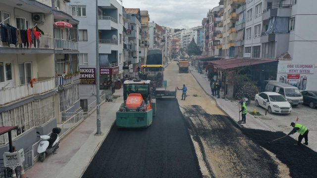 Vatandaşların yaşam konforunu arttırmak için yatırımlarını sürdüren Aydın Büyükşehir Belediyesi, Kuşadası İki Çeşmelik Caddesi'nde de sıcak asfalt serimi çalışması gerçekleştiriyor. Ekipler, asfalt seriminin ardından şerit çizgilerinin çizilmesi ile çalışmalarını tamamlayacak.