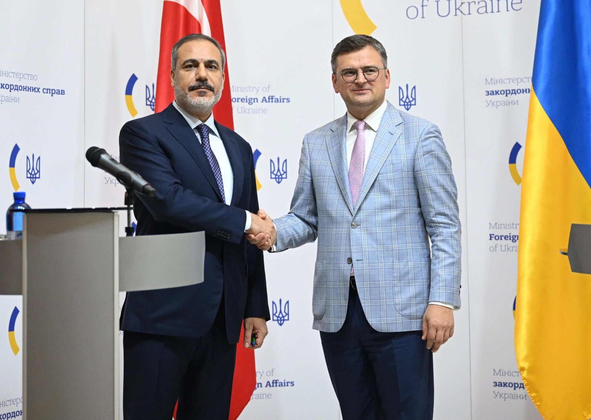 Dışişleri Bakanı Hakan Fidan, Ukrayna Dışişleri Bakanı Dmitri Kuleba ile Ukrayna'nın başkenti Kiev'de bir araya geldi. Bakan Fidan, Ukrayna ve Türkiye arasında stratejik ortaklığa dayalı gelecek dönemde atılacak adımların görüşmede ele alındığını ifade etti. Görüşme sonrası ikili, ortak basın toplantısı düzenledi. Cumhurbaşkanı Recep Tayyip Erdoğan'ın daveti üzerine Ukrayna Devlet Başkanı Volodimir Zelenski'nin 7 Temmuz'da Türkiye'yi ziyaret ettiğini hatırlatan Bakan Fidan, "Bu ziyarette liderlerimiz bölgesel ve ikili düzeydeki bütün konuları detaylarıyla ele almışlardır. Biz de Cumhurbaşkanlarımızın mutabık kaldıkları konuların takibini yapma imkanı bulduk" dedi.