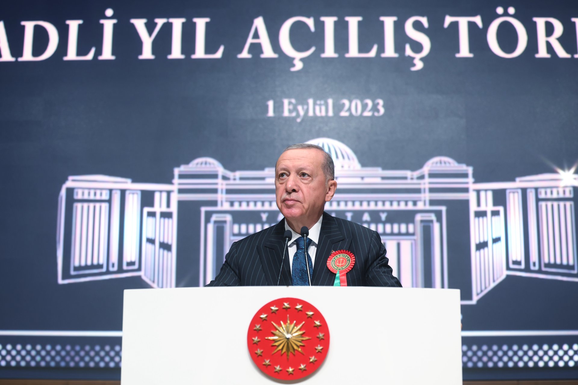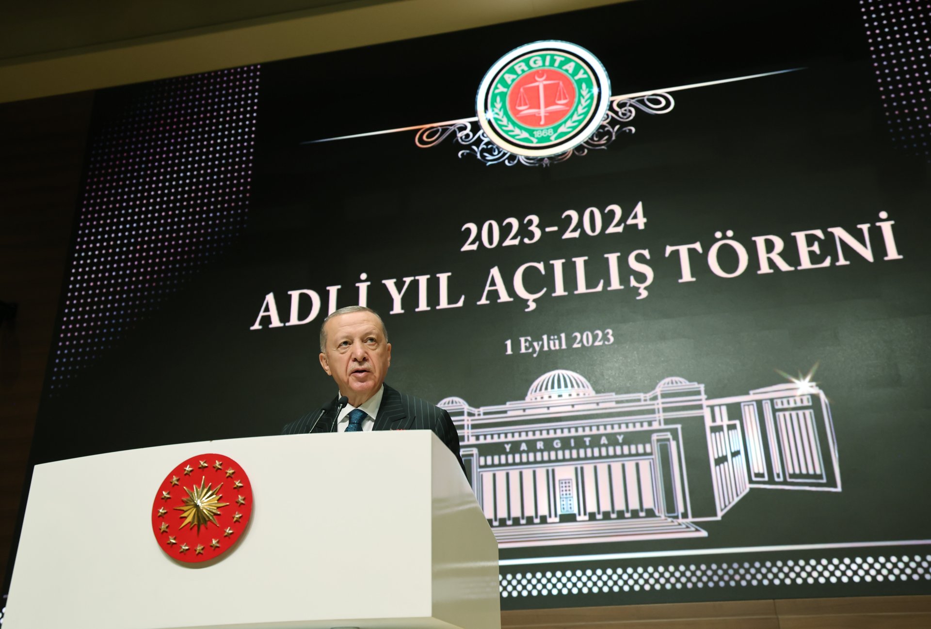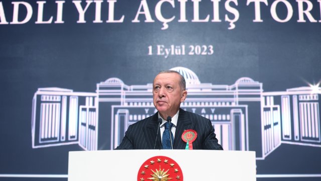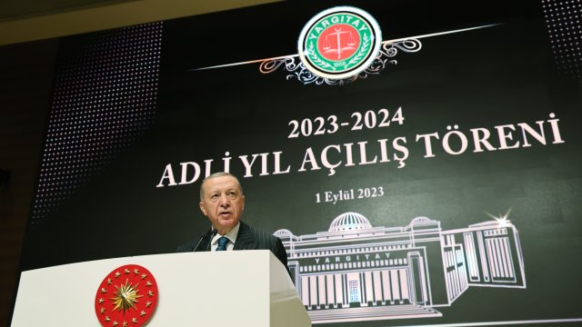 Cumhurbaşkanı Erdoğan, Yargıtay Başkanlığı'nda düzenlenen 2023-2024 Adli Yıl Açılış Töreni'nde konuştu. Erdoğan, yeni adli yılın millet ve tüm adalet teşkilatı için hayırlı olmasını dileyerek, 2015 yılında İstanbul Adalet Sarayı'ndaki odasında terör örgütü DHKP-C üyelerince şehit edilen Cumhuriyet Savcısı Mehmet Selim Kiraz ve Kahramanmaraş merkezli depremlerde hayatını kaybeden 231 yargı çalışanını andı.