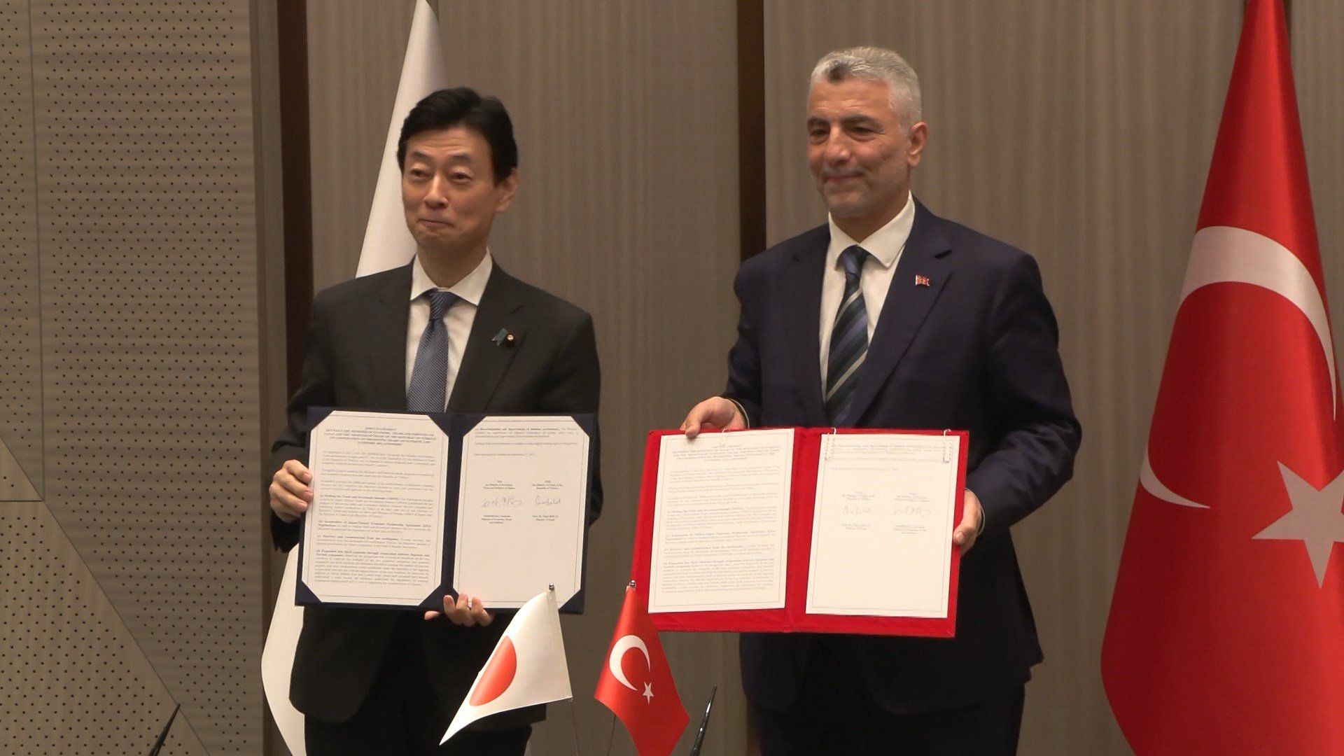 Ticaret Bakanı Ömer Bolat imza töreninde yaptığı konuşmada, "Türkiye ile Japonya arasında ticaret, yatırım ve ekonomik iş birliği konularını içeren ortak bir deklarasyon imzalayacağız. İki ülke arasındaki ticaret, yatırım ve ekonomik ilişkilerini çok kapsamlı bir şekilde ele aldık. İki ülke arasındaki karşılıklı ticaretin 5 milyar doları aşmasından büyük bir memnuniyet duyuyoruz. Bu sene sonunda da 6 milyar dolara ulaşacağımıza inanıyoruz. İki ülkenin ticaret bakanları olarak imzalayacağımız ortak deklarasyon ile Türkiye ve Japonya arasındaki diplomatik ilişkilerin kurulmasının 100'üncü yıl dönümünü gelecek yıl kutlamadan önce ülkelerimiz arasındaki iş birliğini daha da derinleştirme ve geliştirmeye yönelik bazı kararlar aldık. İki ülke arasındaki ticaret ve yatırım alanlarındaki iş birliğini teşvik etmek için daha önce kurulmuş olan TRINS yani Türkiye-Japonya Ticaret ve Yatırım Zirvesi'ni mümkün olan en kısa sürede Tokyo'da gerçekleştirmek ve bu zirveleri bundan sonra düzenli olarak toplama kararını aldık" dedi.