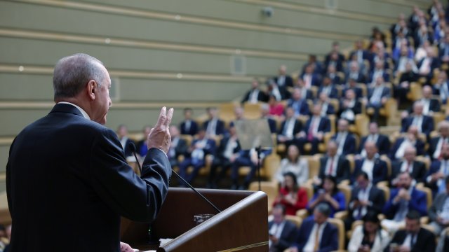 Erdoğan, dünyada son 60-70 yılın zirvelerine çıkan enflasyonun doğal olarak Türkiye’nin de bir sorunu olduğuna dikkat çekerek, "Enflasyonla mücadelede başta doğalgaz olmak üzere enerji fiyatlarında hayata geçirdiğimiz sübvansiyonlar ve kira artışlarına tavan fiyatı uygulamamızın yanı sıra bir takım ilave tedbirleri aldık. Fırsatçılara ve açgözlülere yönelik denetimlerimiz artarak devam ediyor. Kimi sektörlerde oluşan fiyat köpüğünün indiğine ve piyasanın dengesini bulmaya başladığına şahit oluyoruz. Merkez Bankası rezervlerimiz aynı şekilde 117,3 milyar dolar seviyesindeki güçlü seyrini sürdürüyor. Sermaye piyasalarımızın hem arz hem de talep tarafında gelişimi devam ediyor. Hane halkı borçluluğunda ülkemiz gelişmekte olan ülke ortalamalarına göre oldukça düşük bir riskliliğe sahiptir. 2022 yılını milli gelire oranla yüzde 1'lik bir bütçe açığı ile kapattık. Bütçe disiplinimiz deprem felaketine daha etkin müdahale etmemizi sağladı. Karşı karşıya olduğumuz çeşitli zorluklara rağmen hedeflerimize ulaşma noktasında en küçük bir şüphemiz yoktur. Cumhurbaşkanı Yardımcımız, Strateji ve Bütçe Başkanlığımız ile Hazine ve Maliye Bakanlığımızın koordinasyonunda katılımcı bir anlayışla hazırlanan Orta Vadeli Program işte bu mücadelemizde bizlere destek verecektir. Program aynı zamanda 2024-2026 döneminde Türk ekonomisi için kapsamlı bir yol haritası teşkil edecektir" dedi.