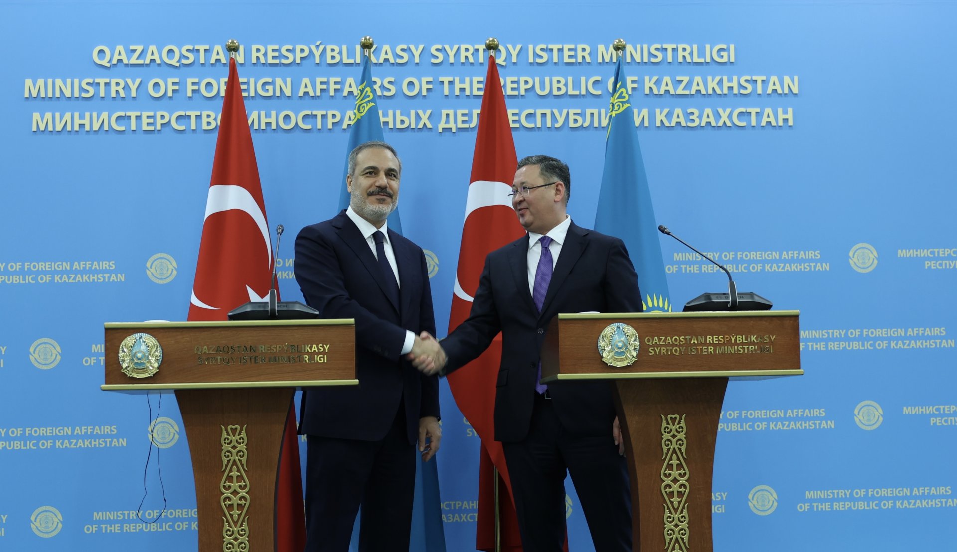 Resmi temasları kapsamında Kazakistan’ın başkenti Astana’da bulunan Dışişleri Bakanı Fidan, Kazakistan Başbakan Yardımcısı ve Dışişleri Bakanı Murat Nurtleu ile görüşmesinin ardından düzenlenen ortak basın toplantısında konuştu.