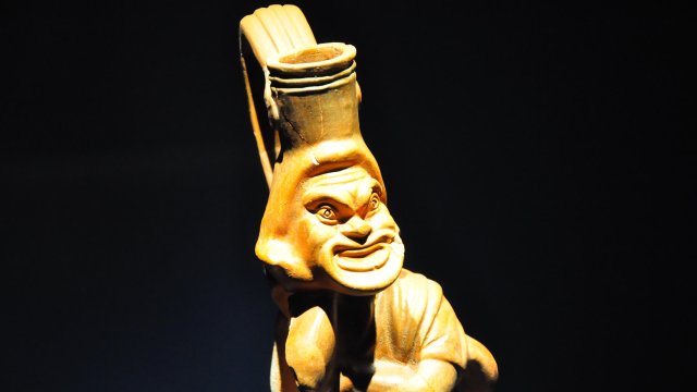 Aigai'de ortaya çıkan maskeli oyuncu tasvirli 1800 yıllık vazo sergide