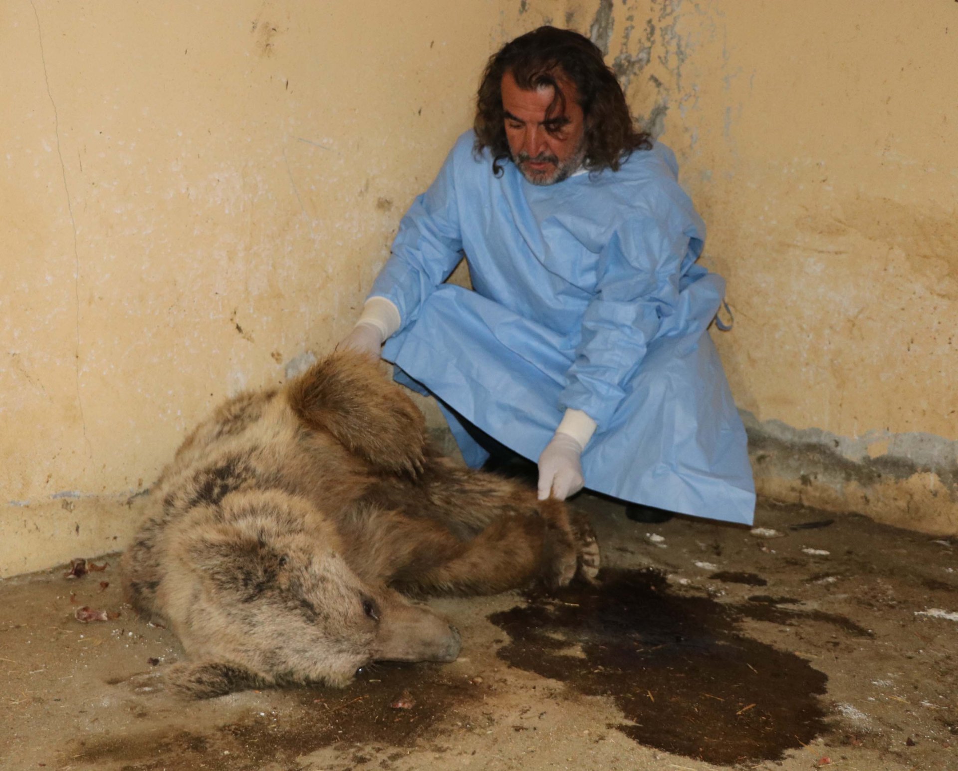 Merkez Müdürü Prof. Dr. Lokman Aslan, "İlk muayenelerimizi, ilk ilaçlarımızı, ilk kontrollerimizi yaptık ve kendisine bir yol oluşturarak, tedavisine devam etmekteyiz. Tedavi edip, sonucunda Doğa Koruma Milli Parklar ile bir karar verip, göndereceğiz. Her ateşli silah yaralanmasında, hayati tehlike olur. Çünkü ateşli silahla atılan mermi, hayati organa isabet etmiş. Felç tablosunu çözebilirsek ayı yaşamını devam ettirir. Şu an itibarıyla verdiğimiz serum ve ilaçlar ile hayati tehlikesini atlatmak üzeredir. Ama felç tablosu hala devam etmekte" dedi.
