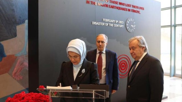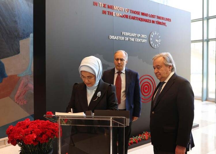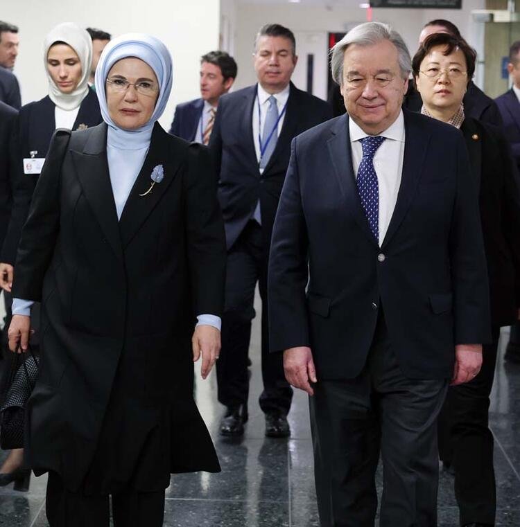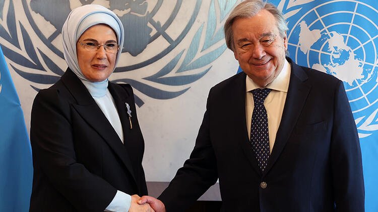 Emine Erdoğan, BM Genel Sekreteri Antonio Guterres ile görüşme gerçekleştirdi. Guterres ile BM Anma Köşesi ve Sıfır Atık Panosunu ziyaret eden Emine Erdoğan, Uluslararası Göç Teşkilatı İcra Direktörü Antonio Vitorino’yu kabul etti.