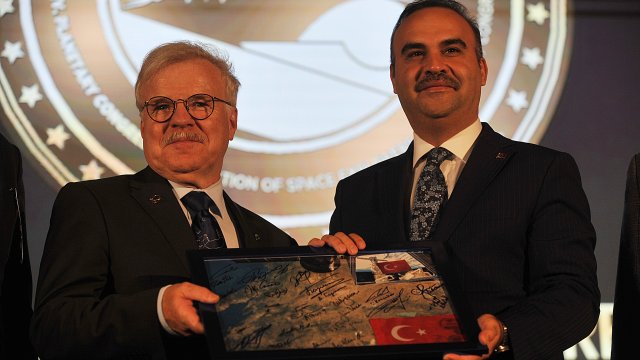 UZAYA GÖTÜRDÜĞÜ TÜRK BAYRAĞINI BAKAN KACIR’A HEDİYE ETTİ