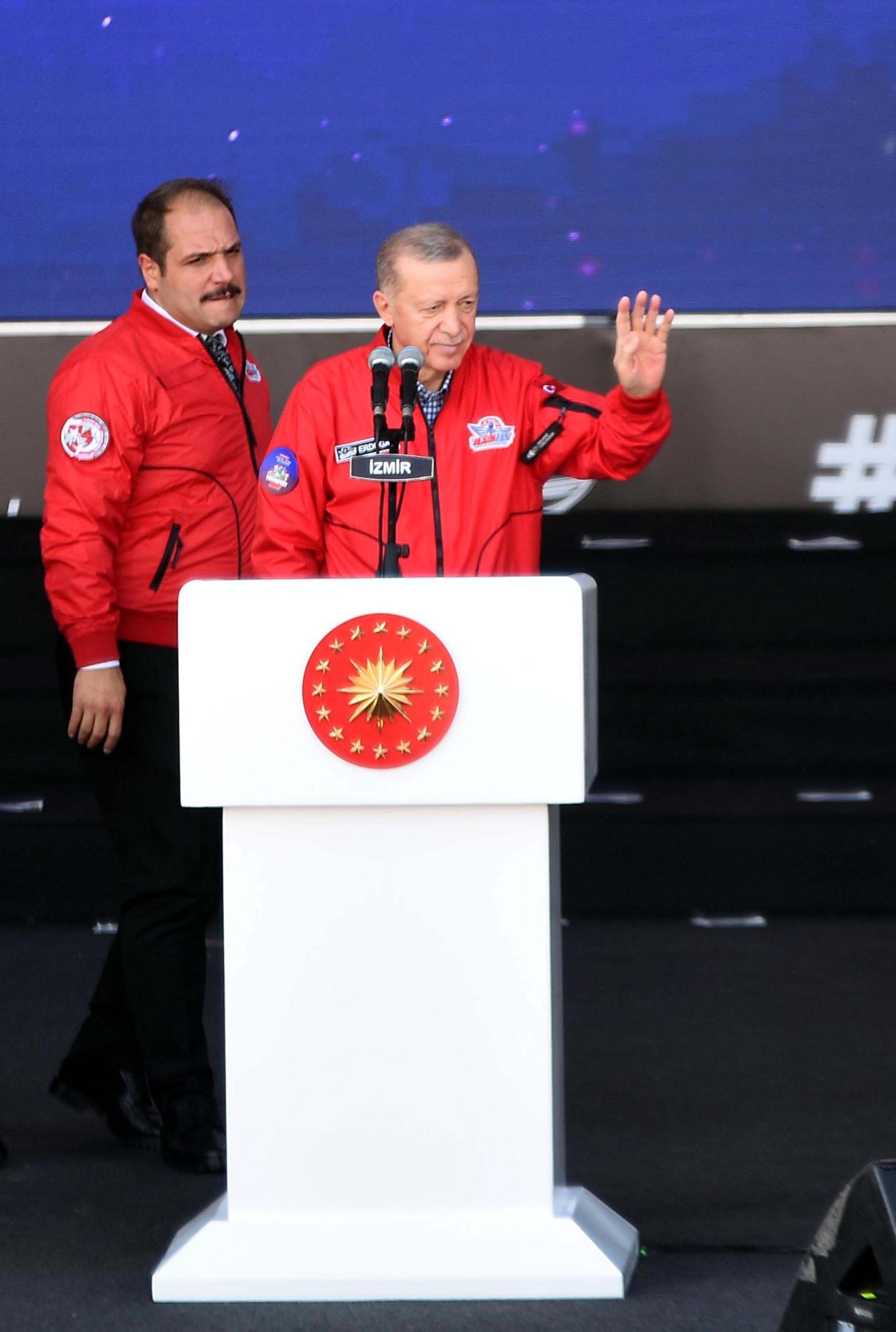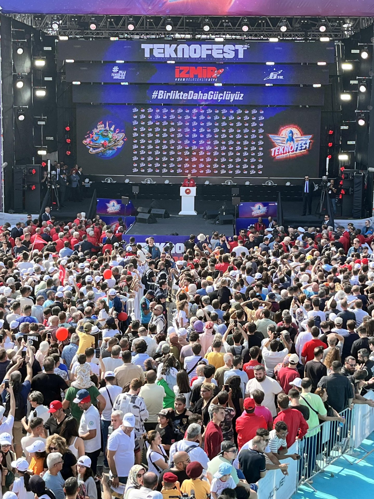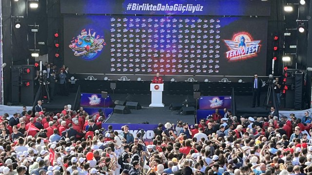İzmir Çiğli Havalimanı'ndaki Havacılık Uzay ve Teknoloji Festivali TEKNOFEST'in üçüncü günü, Cumhurbaşkanı Recep Tayyip Erdoğan'ın katılımıyla gerçekleştirildi. Festivalde Cumhurbaşkanı Erdoğan'ın yanı sıra İçişleri Bakanı Ali Yerlikaya, Sanayi ve Teknoloji Bakanı Mehmet Fatih Kacır, Tarım ve Orman Bakanı İbrahim Yumaklı, AK Parti Genel Başkanvekili Binali Yıldırım, İzmir Valisi Süleyman Elban, Baykar Yönetim Kurulu Başkanı, T3 Vakfı Mütevelli Heyeti Başkanı ve TEKNOFEST Yönetim Kurulu Başkanı Selçuk Bayraktar, AK Partili İzmir milletvekilleri, ziyaretçiler yer aldı. Cumhurbaşkanı Erdoğan, TEKNOFEST alanında "Dünya lideri Tayyip Erdoğan" sloganlarıyla karşılandı. TEKNOFEST'te gençlere seslenen Cumhurbaşkanı Recep Tayyip Erdoğan, "Başkaları ne yaparsa yapsın, hangi ihtiraslar peşinde koşarsa koşsun, biz sizin için koşturmaya devam edeceğiz. Seçim döneminde 'gençlerin demokrat dedesi' maskesi takanların söz konusu koltukları olunca nasıl faşizan hale geldiklerini hepimiz görüyoruz. Daha düne kadar dürüstlükten, şeffaflıktan bahsedenlerin iktidar uğruna birbirlerine nasıl yalan söylediklerini de hep beraber takip ediyoruz. Gençlerimiz de hayal kırıklığına yol açan bu utanç sahnelerine rağmen biz siyasete güvenin zedelenmemesi için duruşumuzu asla bozmayacağız. Özellikle siz gençlerimize karşı daima harbi ve hasbi davranacak, aramızdaki gönül bağının sarsılmasına müsaade etmeyeceğiz. Rabbim hepinizden razı olsun" ifadelerini kullandı.