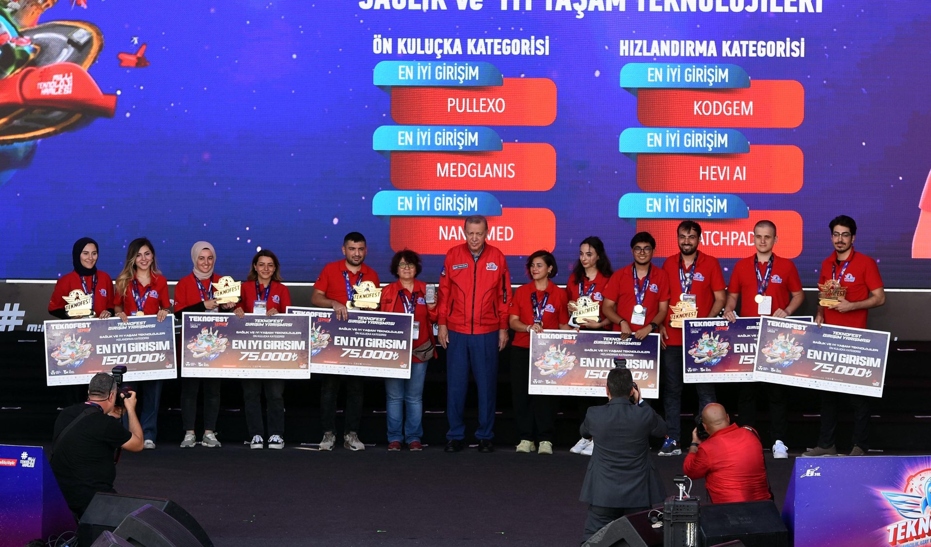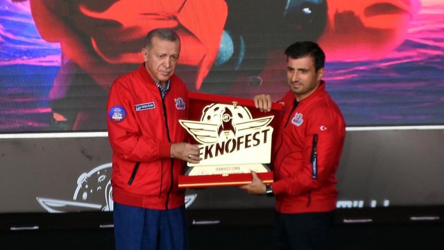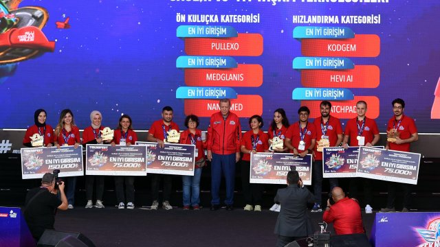 Cumhurbaşkanı Erdoğan, konuşmaların ardından TEKNOFEST yarışmalarında dereceye girenlere ödüllerini takdim etti.