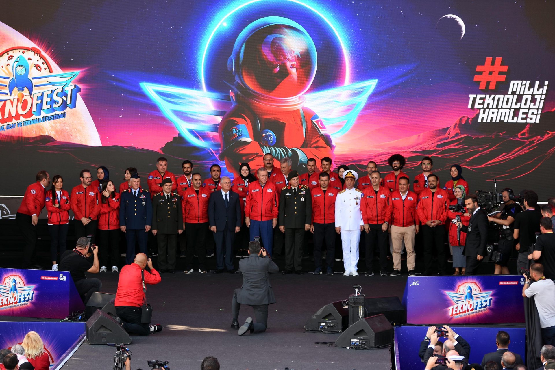 "Tarihimizin bu dönüm noktasını anlamına ve önemine uygun bir şekilde kutlamanın gayretindeyiz. Geniş bir alana yayılan çeşitli etkinliklerle cumhuriyetimizin bir asırlık serencamını gençlerimizle buluşturmaya çalışıyoruz. TEKNOFEST de bunlardan birisidir. TEKNOFEST coşkusundan TEKNOFEST'in şu muhteşem atmosferinden mümkün olduğu kadar fazla sayıda gencimizi istifade ettirelim istiyoruz. Bu amaçla 'Tek bir il yerine TEKNOFEST'i 3 ilimizde tertipleyelim' dedik. 27 Nisan-1 Mayıs tarihleri arasında Atatürk Havalimanı Millet Bahçesi'nde düzenlenen TEKNOFEST İstanbul 2 milyon 247 bin ziyaretçiyle kendi rekorunu kırmıştır. Türkiye'nin savunma sanayi hamlelerinin siyasi sebeplerle hedef alındığı bir dönemde 2 milyonu aşkın gencimiz TEKNOFEST'e sahip çıktı. Festivalimiz 30 Ağustos Zafer Bayramı'nda Ankara'nın misafiri oldu. TEKNOFEST Ankara'da çoğu genç 943 bin ziyaretçiyi ağırladık. Tam 4 gün boyunca Ankaralı gençlerimiz gerçek manada bir teknoloji şöleni yaşadı."