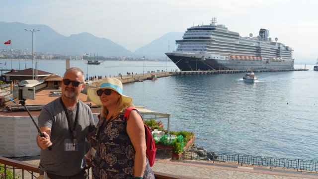 Hollanda bandıralı, 300 metre uzunluğundaki 'Nieuw Statendam' adlı kruvaziyer, Mısır'ın İskenderiye Limanı'ndan yola çıktıktan sonra Akdeniz'deki turu kapsamında 7 Ekim'de İsrail'in Hayfa Limanı'na demirledi. Hamas'ın operasyonu, İsrail'in de savaş ilan etmesinin ardından yaşanan çatışmalar sonrası yolcuların indirilmemesi ve geminin Hayfa'dan ayrılması kararlaştırıldı. Demirlediği gün Hayfa Limanı'ndan yola çıkan gemi, bu sabah Alanya Limanı'na geldi. Çoğunluğu ABD ve Kanada vatandaşı olmak üzere toplamda 2 bin 542 turist ile 957 personelin bulunduğu gemideki turistler, gümrük işlemlerinin ardından ilçe merkezinde gezintiye çıktı. 'Nieuw Statendam' adlı kruvaziyerin bugün saat 18.00'de Güney Kıbrıs'ın Limasol şehrine gitmek üzere demir alacağı belirtildi.
