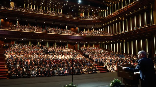 Cumhurbaşkanı Erdoğan, Beştepe Millet Kongre ve Kültür Merkezi'nde, Yükseköğretim Kurulu 2023-2024 Akademik Yılı Açılış Töreni'nde konuştu. Erdoğan, üniversitelerin birer bilim yuvası olmaları yanında öğrencilerin entelektüel gelişmelerine katkı sunan, yeteneklerini keşfetmelerini sağlayan, kendi gelenekleri olan evrensel kurumlar olduğunu söyledi. Erdoğan, "Üniversiteler yetiştirdiği nesillerle bir memleketin hem tarihini ve hem talihini değiştirir. Beşeri, ekonomik ve sosyal kalkınmanın lokomotifi olan üniversiteler ülkeler açısından uluslararası düzeyde rekabetin itici gücünü oluşturur. Üniversiteleri sadece bilim ya da meslek öğrenme yeri olarak görmek sığ bir bakış açısıdır. Üniversitenin esas işlevi kültür aktarımına ve gelişimine öncülük etmek, döneminin fikirler sistemini inşa etmek, her alanda toplumun seviyesini yükseltmektir. Dolayısıyla üniversite toplumun ve hayatın dışında değil; bilakis tam merkezinde yer alan bir müessesedir. Üniversiteler ne kadar dinamik, ne kadar üretken, özgür, gelişmiş olursa toplum da bundan o derece olumlu etkilenir. Tersi bir durumda ise toplumun önce durağanlaşması ardından eğitim, kültür, sanat, bilim ve sanayide gerilemesi kaçınılmazdır. Gerek kendi geçmişimize gerekse dünya tarihine baktığımızda bunun sayısız örneği ile karşılaşıyoruz" ifadelerini kullandı.