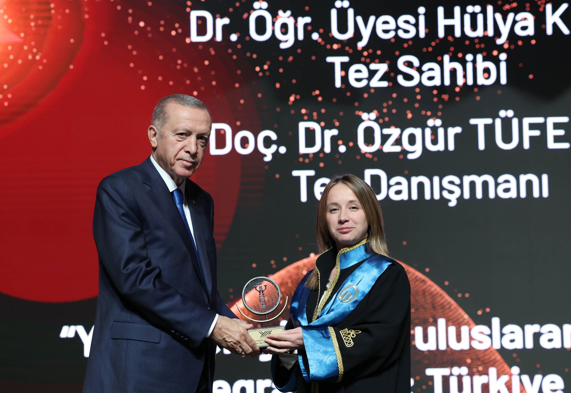 Erdoğan, geçtiğimiz bin 400 yıla damgasını vuran Emevi, Abbasi, Endülüs Babür, Selçuklu ve Osmanlı gibi geride iz bırakan devletlerin ayırıcı vasfının ilimde yakaladıkları seviye olduğunu ifade ederek, "Bilim alanında ileride olduğumuz asırların, insanlık tarihine damga vurduğumuz dönemlerle aynı olması elbette tesadüf değildir. Bu dönemler İslam şehirlerinin giriş kapısına ‘Bilgi ve erdem, kılıç ve silahtan üstündür’ yazıldığı örnek dönemlerdir. Ne zaman ki önceliklerimiz değişmiş, ilmiye sınıfı topluma rehberlik etme vasfını yitirmiştir, işte o vakit gerileme ve çöküş de başlamıştır. İlmin merkezinin doğudan batıya kaymasıyla birlikte askeriyede, ticarette, üretimde, diplomaside, kültür ve sanatta da merkez yer değiştirmiştir. İslam dünyası yerinde sayarken veya kan kaybederken üniversitelerin öncülüğünde Amerika ve Avrupa yükselen güç haline gelmiştir. Tarihin bize öğrettiği hakikat şudur; bilgiye sahip olan insanlığa yön verir. Buna karşılık ilim ve akademide geriye düşen diğer alanlarda da geriye düşmekten kurtulamaz. Sürekli gelişmenin, ilerlemenin, gücünü muhafaza etmenin yolu bilimde, kültürde ve sanatta mümbit bir iklime sahip olmaktan geçer. Bizim üniversitelerimizin üzerine titrememizin arkasında işte bu anlayış vardır" diye konuştu.