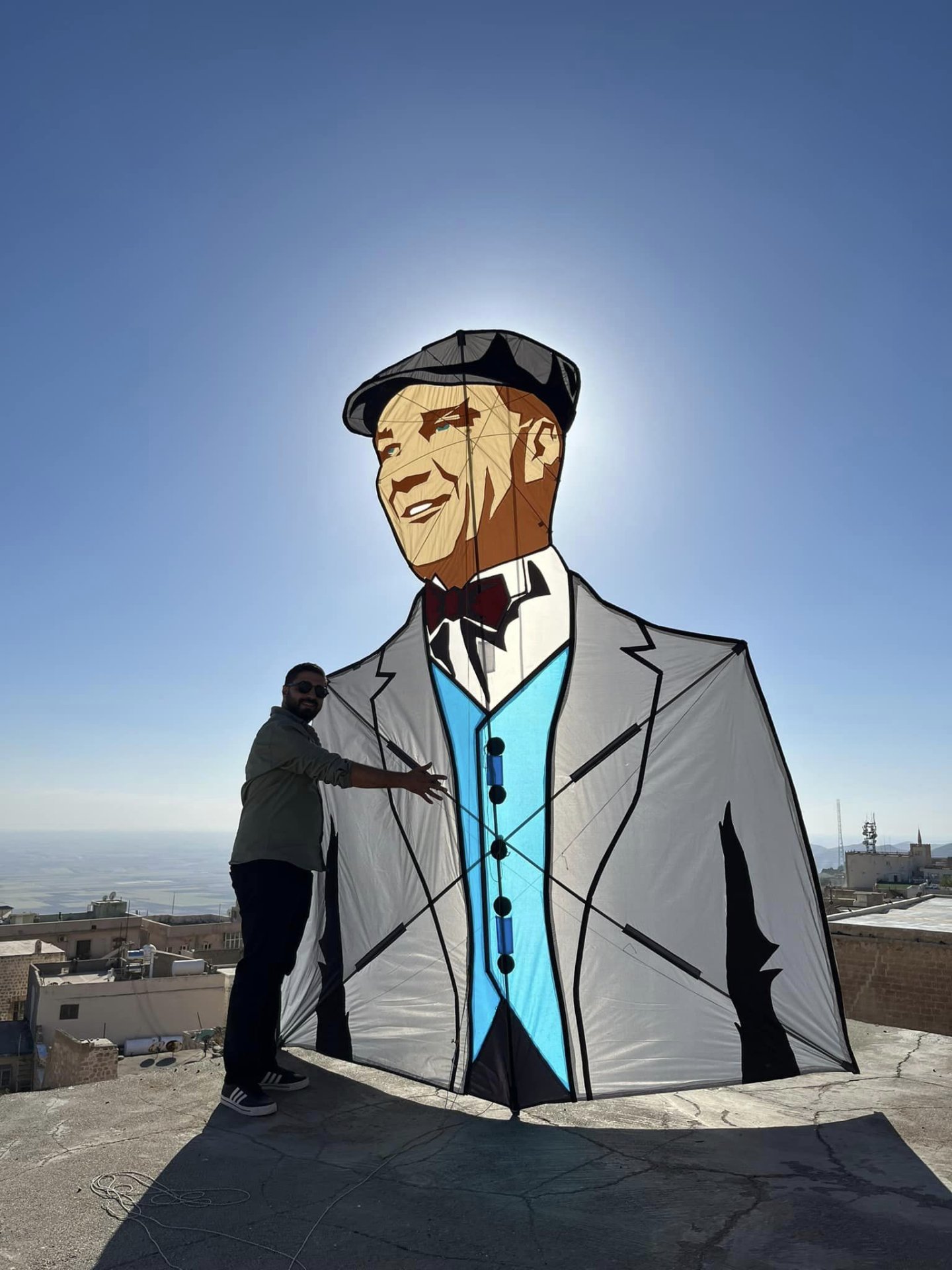 Mardinli Zahit Mungan (32), çocukken ip bağladığı naylon poşeti uçurarak başlayan ve 26 yıldır sürdürdüğü uçurtma tutkusuyla son 19 yılda yurt dışında 30 ülkeyi gezerek 39 festivale katıldı. Önemli dereceler elde eden Mungan, atölyeye çevirdiği doğup büyüdüğü evinde, kendine özgü profesyonel uçurtmalar tasarlayıp imal ediyor. Baskı ve boya olmadan, çeşitli renklerdeki malzemeleri kesip dikerek hazırladığı 9 metrekarelik Atatürk posterli uçurtmasını tarihi kentin semalarında uçuran Mungan, “Atatürk posterli uçurtmamı, Cumhuriyetimizin 100’üncü yılı dolayısıyla Mardin’in semalarında uçurduk” dedi.