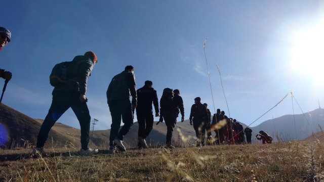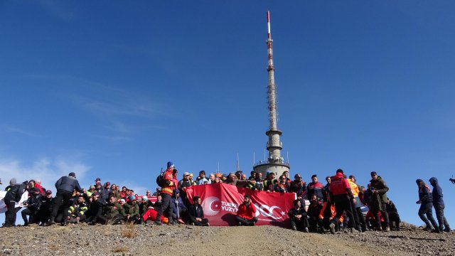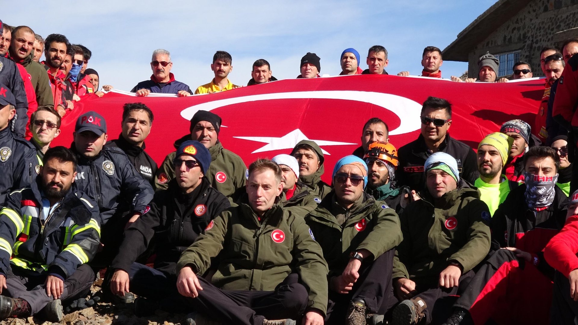Zirvede bir süre dinlenmek için mola veren ekipler, daha sonra geri döndü.
