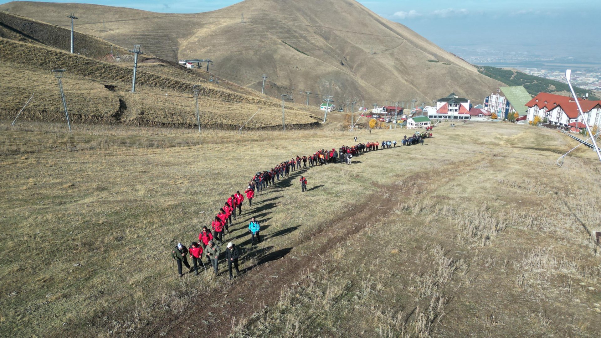 Erzurum Büyükşehir Belediyesi, Cumhuriyet'in 100'üncü yıl etkinlikleri kapsamında 'Palandöken Dağı 100'üncü Yıl Zirve Bayrak Yürüyüşü' düzenledi. Sabah saatlerinde 2400 rakımdan başlayan yürüyüşe, Vali Yardımcısı Mustafa Berk Çelik, Erzurum Büyükşehir Belediyesi Genel Sekreteri Zafer Aynalı, itfaiye, AFAD, UMKE, polis, jandarma ve çeşitli sivil toplum kuruluşlarının arama kurtarma ekipleri katıldı. Vali Yardımcısı Mustafa Berk Çelik'in başlattığı yürüyüşte, katılımcılar tek sıra halinde 3176 metredeki zirveye yaklaşık 2,5 saatte ulaştı.