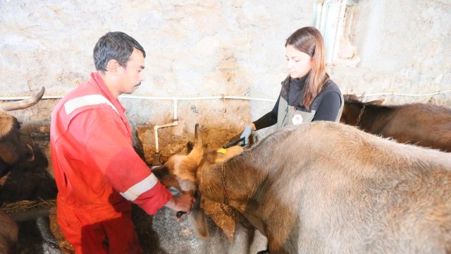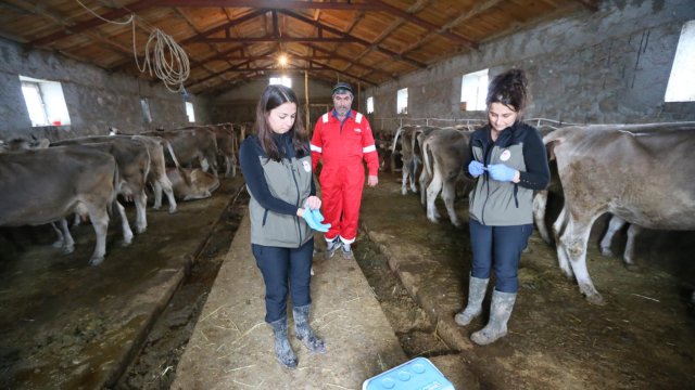 Kars Tarım ve Orman İl Müdürlüğü Hayvan Sağlığı Şubesi'nde Hayvan Hastalıklarıyla Mücadele biriminde görevli veteriner hekim Elif Ekiz ve Alev Tazegül, mesai mefhumu gözetmeksizin köy ve beldelerdeki besi çiftlikleriyle ahırları dolaşıp hayvan hastalıklarıyla mücadele ediyor. Veteriner hekimler, belirledikleri güzergahtaki köylerdeki büyükbaşları salgın hastalıklardan korumak için aşılıyor. Yeni doğan yavruları da kimliklerini oluşturmak amacıyla küpeleyen ekipler, besicileri salgın hastalıklar konusunda da bilgilendiriyor. Yeni doğan buzağılara brusella, kedi ve köpeklere kuduz aşısı yapan Ekiz ve Tazegül, çalışmalarını zor şartlara rağmen sürdürdüklerini anlatıyor.