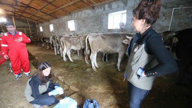 Kars'a 15 kilometre uzaklıktaki Boğazköy'de aşılama yapan Elif Ekiz ve Alev Tazegül, "Hayvanların tepkileri her zaman kontrol edilemiyor. Tabii zorlanıyoruz, ayrıca Kars'ın iklim şartları da zor. Buna rağmen mesai arkadaşlarımızla beraber başarılı bir şekilde yürüttüğümüzü düşünüyoruz. Programlarımız aşı ve küpeleme üzerine oluyor. Geçen sene bir şap hastalığı görüldü hayvanlarımızda, bunun için aşılamamızı yıl boyunca 3 defa yaptık. Şimdi tekrar hem tanımlanmayan hayvanlarımızı tanımlıyoruz hem de şap aşısı, çiçek, anthrax ve yeni doğan buzağılarımıza brusella aşısı yapıyoruz" diye konuştu.