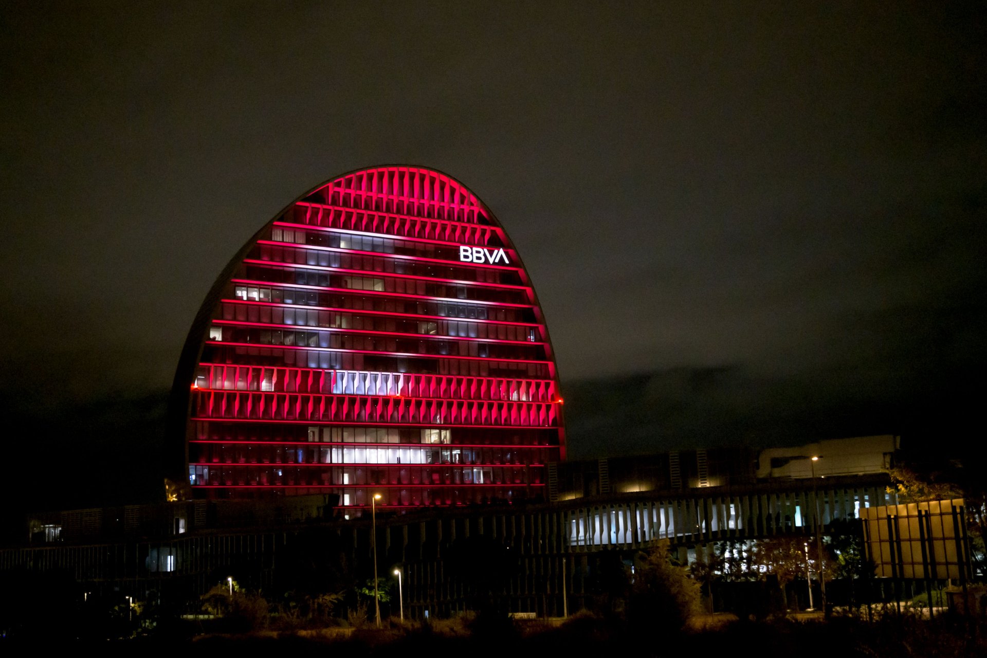 Garanti BBVA’nın bünyesinde bulunduğu BBVA’nın Madrid’deki Genel Müdürlük binasına Cumhuriyetin 100'üncü yılı dolayısıyla Türk bayrağı yansıtıldı.