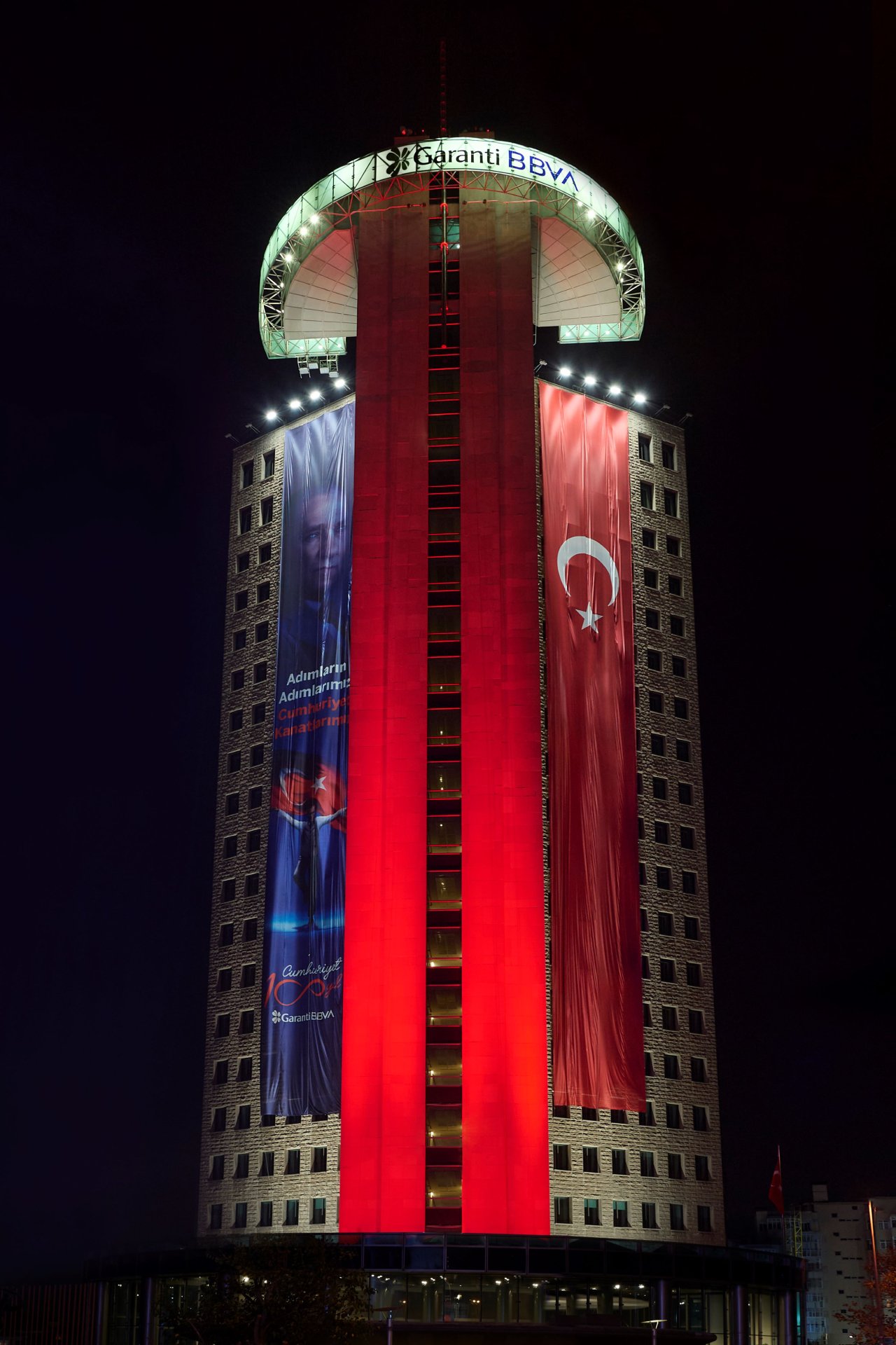Garanti BBVA, Cumhuriyetin 100’üncü yaşını, gerçekleştirdiği bir dizi etkinlikle kutladı. Bu kutlamaların bir parçası olarak İstanbul Genel Müdürlük binası da Türk bayrağının renkleriyle aydınlatıldı.