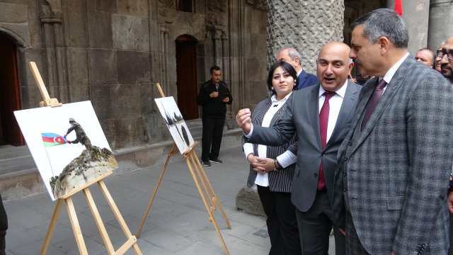 Vali Mustafa Çiftçi'nin Azerbaycan ve Türkiye arasındaki kardeşliğiyle ilgili konuşmasından sonra, Nahcivan ve Karabağ zaferini anlatan fotoğraflar ile yağlı boya eserlerin sergisi açıldı. Karabağ zaferiyle ilgili fotoğrafları Vali Mustafa Çiftçi'ye anlatan Başkonsolos Guliyev, geri aldıkları topraklarda bayrak dikecek sağlam bir bina bulamadıklarını söyledi. Sergide yer alan ve Azerbaycan'ın Karabağ zaferinde önemli rolü olan Bayraktar TB2'nin fotoğrafını gösteren Guliyev, "Savaşın gözbebeğiydi. Bu savaşta bunu ölüm meleği olarak adlandırdılar ama başka bir ülkede bunu yaşam meleği olarak adlandırdılar. Çünkü burada biz savaş veriyorduk, Türk Dünyası olarak, orada ise onlardı. Onların işine gelince yaşam meleği, niyeyse bize gelince ölüm meleği oluyor" dedi.