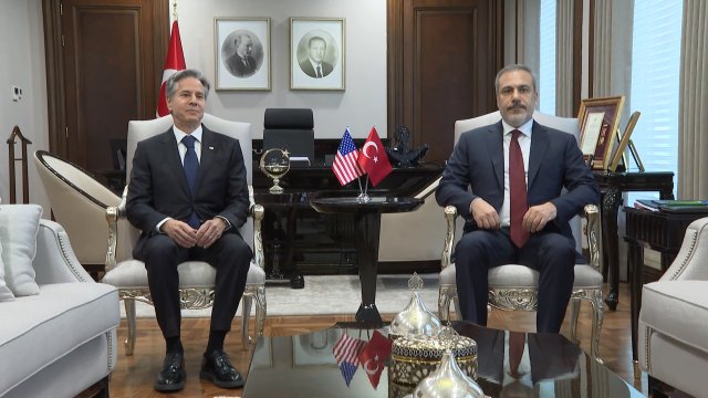 Antony Blinken ile beraberindeki heyet, gece saatlerinde siyasi temaslarda bulunmak üzere Ankara'ya geldi. Dışişleri Bakanı Hakan Fidan, sabah saatlerinde ABD'li mevkidaşını baş başa ve heyetler arası görüşmelerde bulunmak üzere Dışişleri Bakanlığı'nda karşıladı. Kapıda tokalaşarak görüntü veren Fidan ile Blinken, daha sonra baş başa görüşmeye geçti. Basına kapalı gerçekleşen görüşmede Gazze'deki durum, bölgesel meseleler ve ikili ilişkiler hakkında fikir alışverişinde bulunulacağı belirtildi. Dışişleri Bakanlığı'nda görüşme sürüyor.