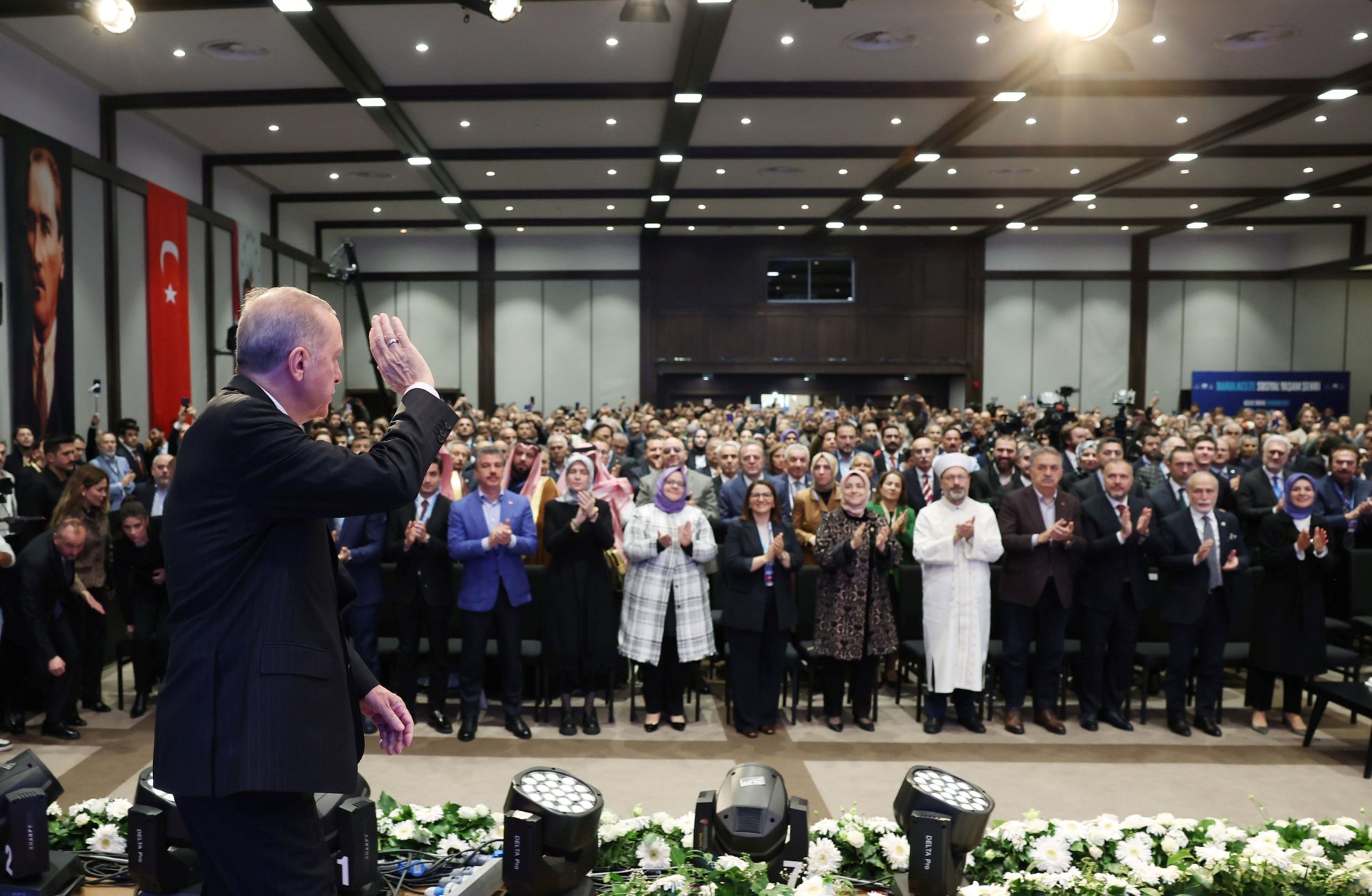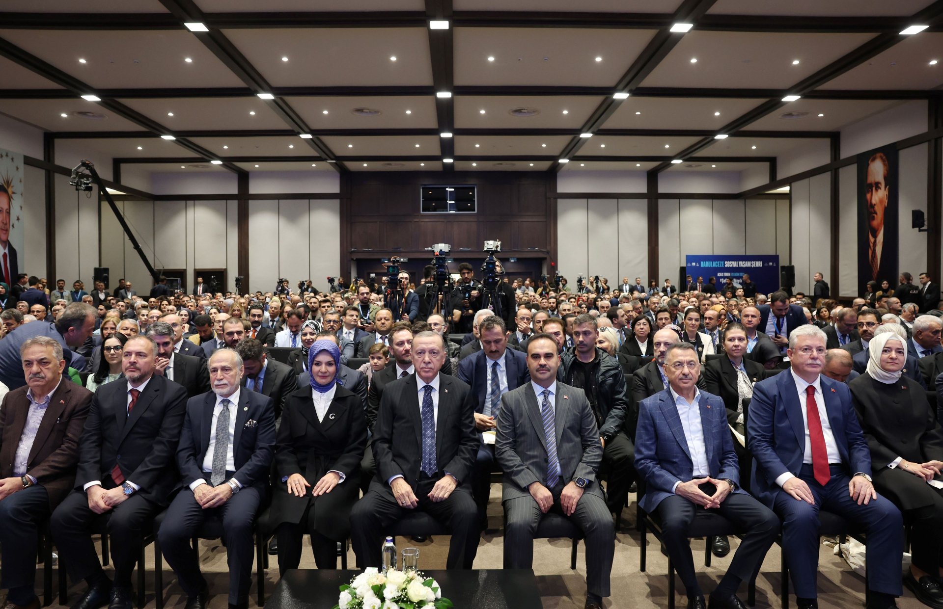 Cumhurbaşkanı Erdoğan, "Umut evleriyle, engelsiz gündüz bakım evleriyle, kurumsal bakım merkezleriyle engellilerimize ve ailelerine destek olduk. Milletimizin takdiriyle 2002'de Türkiye'yi yönetme görevini devraldığımızda kamuya ait bakım ve rehabilitasyon merkezlerinin sayısı neydi biliyor musunuz? 21. Bugün 107. Kamu özel toplam 417 bakım merkezinde şu an 36 bin kardeşimize yatılı bakım hizmeti sunuluyor. 2007 yılında başlattığımız evde bakım yardımı kapsamında 561 bin 752 vatandaşımıza aylık 5 bin 98 lira ödeme yapıyoruz. Ailesi yanında bakımı mümkün olmayan engelliler için hayata geçirdiğimiz 149 umut evinde 654 kardeşimiz hizmet alıyor. Her ilde, en az bir merkez olacak şekilde Türkiye genelinde 134 engelsiz gündüz yaşam merkezimiz çalışmalarını sürdürüyor. Bunun gibi birçok hizmetimiz, projemiz ve desteğimiz var. Her ne kadar elitler ve fil dişi kulede yaşayanlar bilmese de, ihtiyaç sahibi vatandaşlarımız sunulan bu hizmetleri çok iyi biliyor, takdir ediyor. Çünkü biz lafa gelince sürekli halktan, halkçılıktan ve sosyal devletten bahseden ama siyasi hayatları boyunca halka tepeden bakanlardan olmadık. Hangi makamda olursa olalım hep halkımızla iç içe, gönül gönüle olduk. Köklü kerim devlet geleneğimizi günümüzün sosyal devlet yaklaşımıyla harmanlayarak bu alanda yeni ve özgün bir anlayış geliştirdik. Ülkemiz anayasamızda belirtilen sosyal devlet vasfına tam anlamıyla bizim iktidarlarımız döneminde kavuşmuştur. Türkiye sosyal güvenlik şemsiyesinin kuşatıcılığı bakımından dünyanın en ileri ülkelerinden birisidir. Böyle bir sistemi Türk siyasetine ve yönetim sistemine kazandırmış olmaktan büyük bir memnuniyet duyuyoruz. İnşallah bundan sonra da kimsesizlerin kimsesi olmaya devam edeceğiz" diye konuştu.