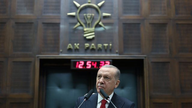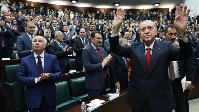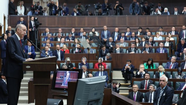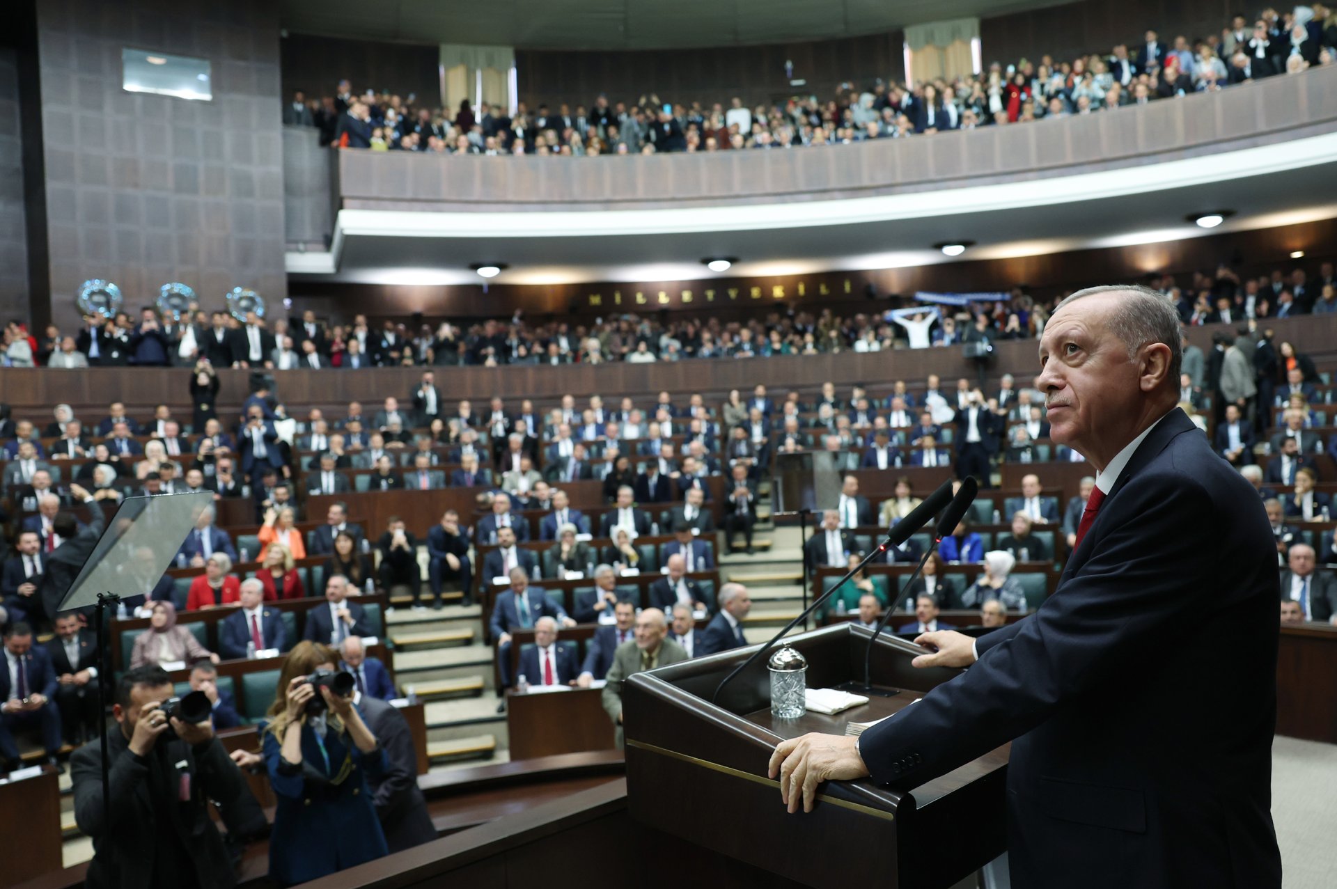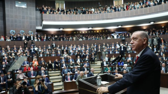 Cumhurbaşkanı Erdoğan, Türkiye Büyük Millet Meclisi'nde AK Parti grup toplantısında konuştu. Erdoğan, Kuzey Kıbrıs Türk Cumhuriyeti'nin 40'ıncı kuruluş yıl dönümü ve 15 Kasım Cumhuriyet Bayramı'nı canıgönülden tebrik ettiğini belirterek, "Destansı mücadeleleriyle işgale, esarete, zulme 'Dur' diyen kahramanları rahmetle yad ediyor, Kıbrıs halkına buradan selamlarımı gönderiyorum. Türkiye olarak, Kıbrıs Türkünün yanında olmaya devam edeceğiz. Toplantımızı Gazze ve Ramallah başta olmak üzere gönül ve kültür coğrafyamızda tarifi imkansız acıların yaşandığı bir dönemde gerçekleştiriyoruz. Hükümet olarak bir taraftan İsrail vahşetini durdurmak için diplomasinin tüm imkanlarını kullanırken, diğer taraftan da ülkemizi güçlendirmeye devam ediyoruz" ifadelerini kullandı.