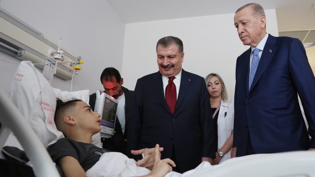 Ziyarete ilişkin sosyal medya hesabından açıklamada bulunan Bakan Koca, "Sayın Cumhurbaşkanımızla birlikte; ülkemize getirdiğimiz hastaları, yüreği Gazze'de olan herkes adına ziyaret ettik" ifadelerini kullandı.