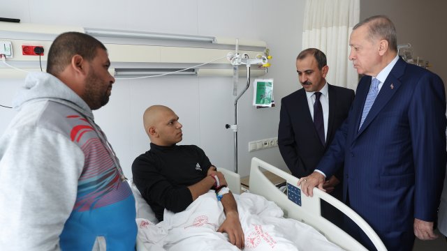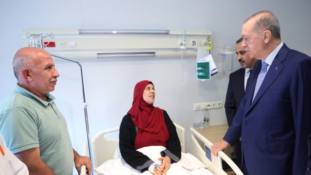 Cumhurbaşkanı Erdoğan, bugün sabaha karşı Gazze'den Türkiye'ye getirilen ve Ankara Bilkent Şehir Hastanesi'nde tedavi altına alınan 27 kanser hastasını ziyaret etti. Hastaların tedavi gördüğü Onkoloji Hastanesi'ne gelen Cumhurbaşkanı Erdoğan'a, Sağlık Bakanı Fahrettin Koca ve Hastane Başhekimi Prof. Dr. Ercan Yeni ile doktorlar eşlik etti. Hastaları tek tek ziyaret ederek 'geçmiş olsun' dileklerini ileten Cumhurbaşkanı Erdoğan, hastaların sağlık durumlarına ilişkin bilgi aldı.