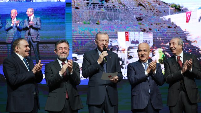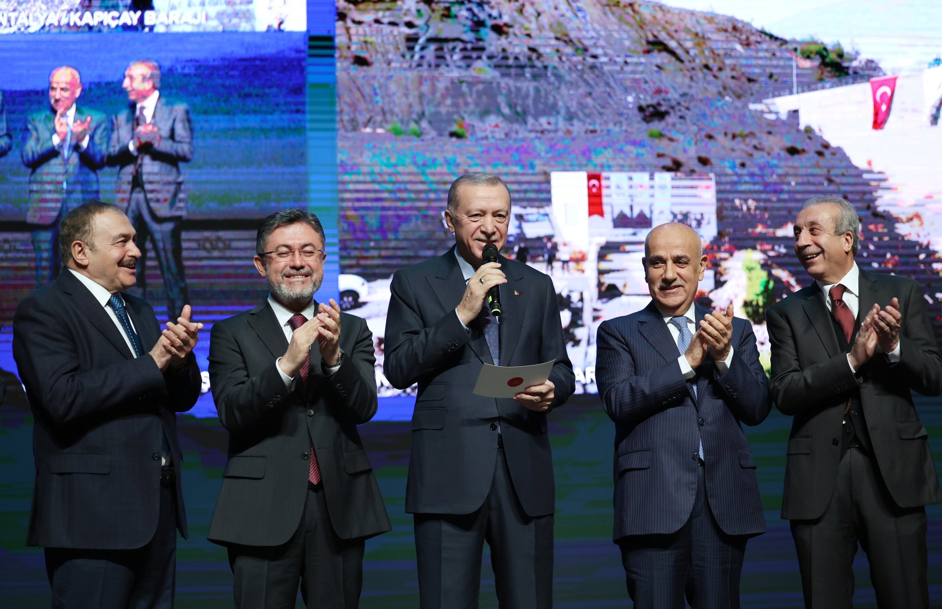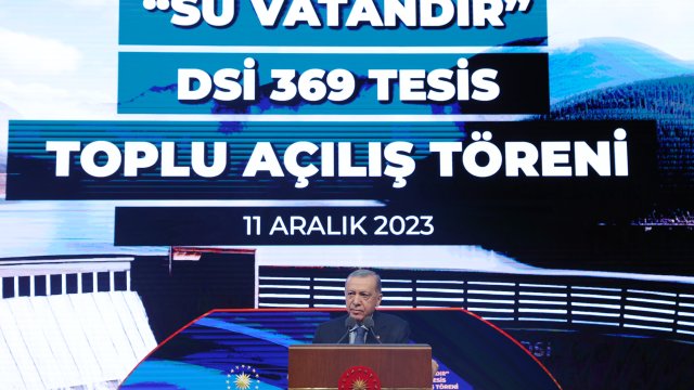 Cumhurbaşkanı Erdoğan, Beştepe Millet Kongre ve Kültür Merkezi'nde DSİ tarafından yapımı tamamlanan 369 tesisin toplu açılış törenine uzaktan bağlantı ile katıldı. Erdoğan, aralarında baraj, içme suyu, sulama, atık su ve taşkın koruma tesislerinin yer aldığı 369 farklı tesisin 66 kentte yaşayan vatandaşlara hayırlı olmasını diledi. Erdoğan, açılışını yaptıkları eserlerden 3 tanesinin özellikle öne çıktığını, temelden yüksekliği 135 metre olan Mersin Pamukluk Barajı ile toplam 282 milyon metreküp su toplanacağını, proje ile Mersin’in uzun vadeli içme suyu ihtiyacının karşılanıp, yıllık 182 bin dekar arazinin sulanacağını kaydetti. Erdoğan, 541 milyon lira yatırım tutarına ve 5 milyon metreküp su depolama kapasitesine sahip Antalya Kapıçay Barajı ile de hem yıllık 5 milyon kilovatsaat elektrik üretileceğini, hem de 18 bin 700 dekar arazinin sulanacağını ve tesisin ekonomiye katkısının 350 milyon lirayı bulduğunu belirtti. Erdoğan, toplam 457 milyon liralık yatırım rakamıyla hayata geçirilen Kocaeli İhsaniye Barajı ile de yıllık 16 milyon metreküp içme suyu temin edileceğini aktardı.