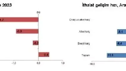 TÜİK, Aralık 2023 dönemine ilişkin dış ticaret istatistiklerini açıkladı. Buna göre; ihracat 2023 yılı aralık ayında, bir önceki yılın aynı ayına göre yüzde 0,4 artarak 23 milyar dolar, ithalat yüzde 11 azalarak 29 milyar 39 milyon dolar olarak gerçekleşti. İhracat 2023 yılı Ocak-Aralık döneminde bir önceki yılın aynı dönemine göre yüzde 0,6 artarak 255 milyar 777 milyon dolar, ithalat yüzde 0,5 azalarak 361 milyar 774 milyon dolar olarak gerçekleşti.