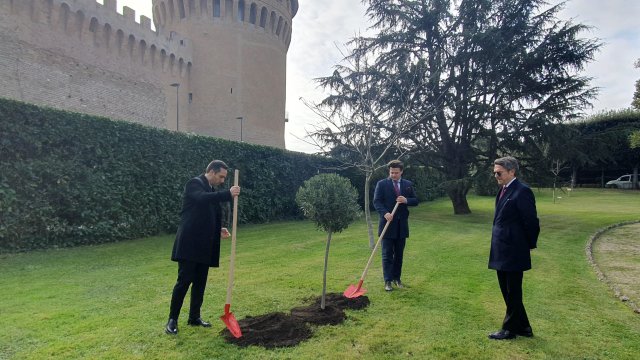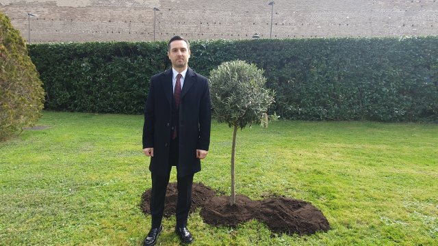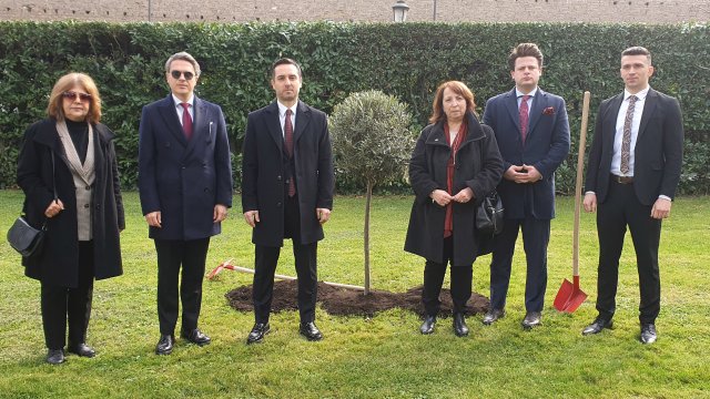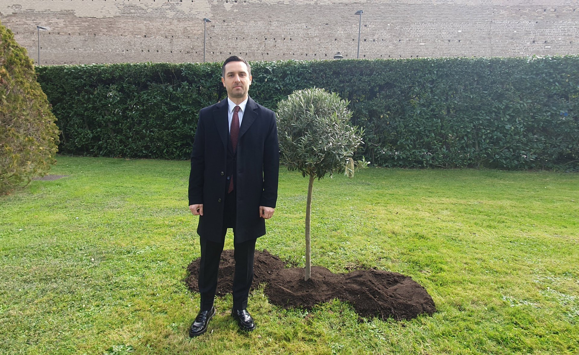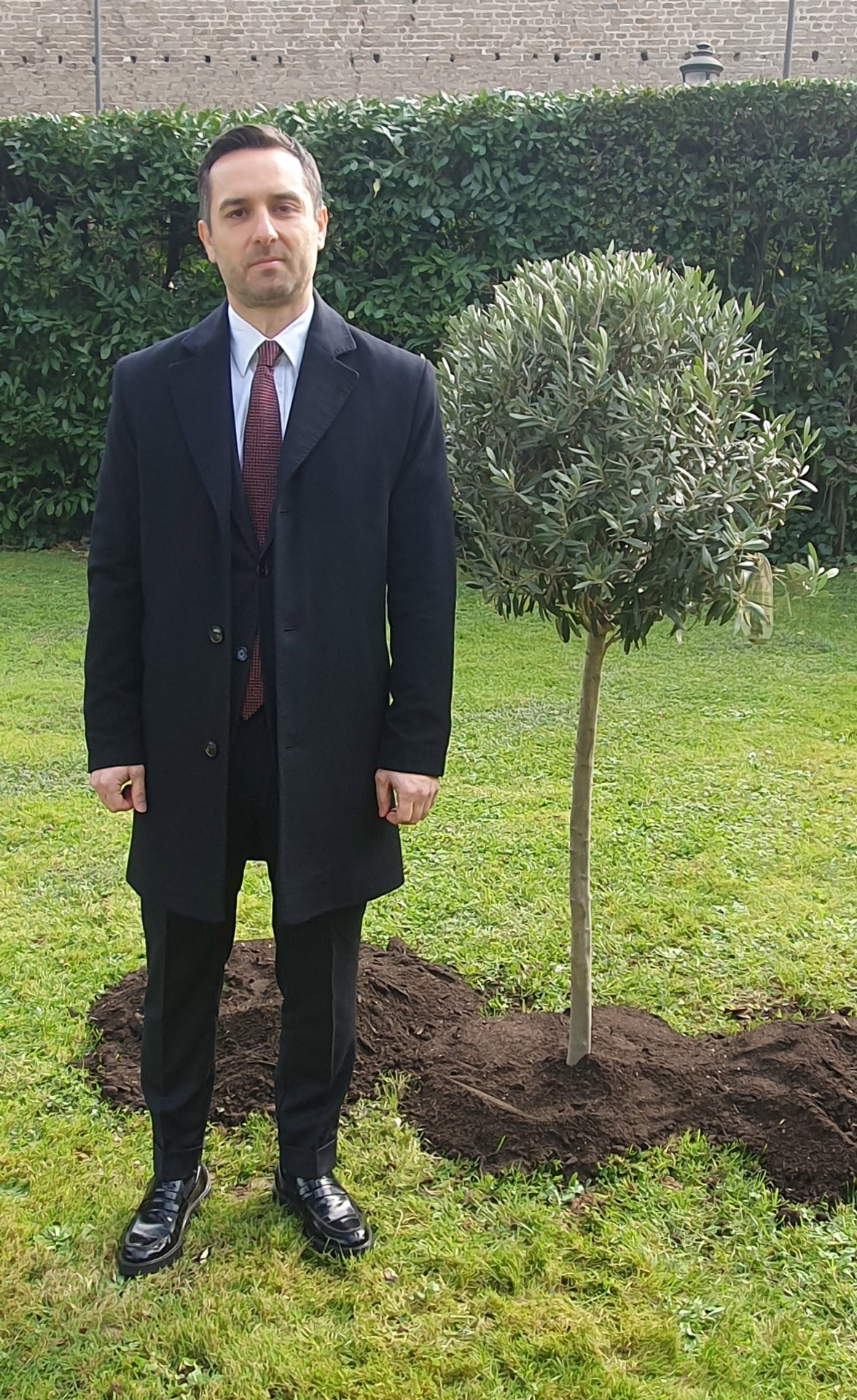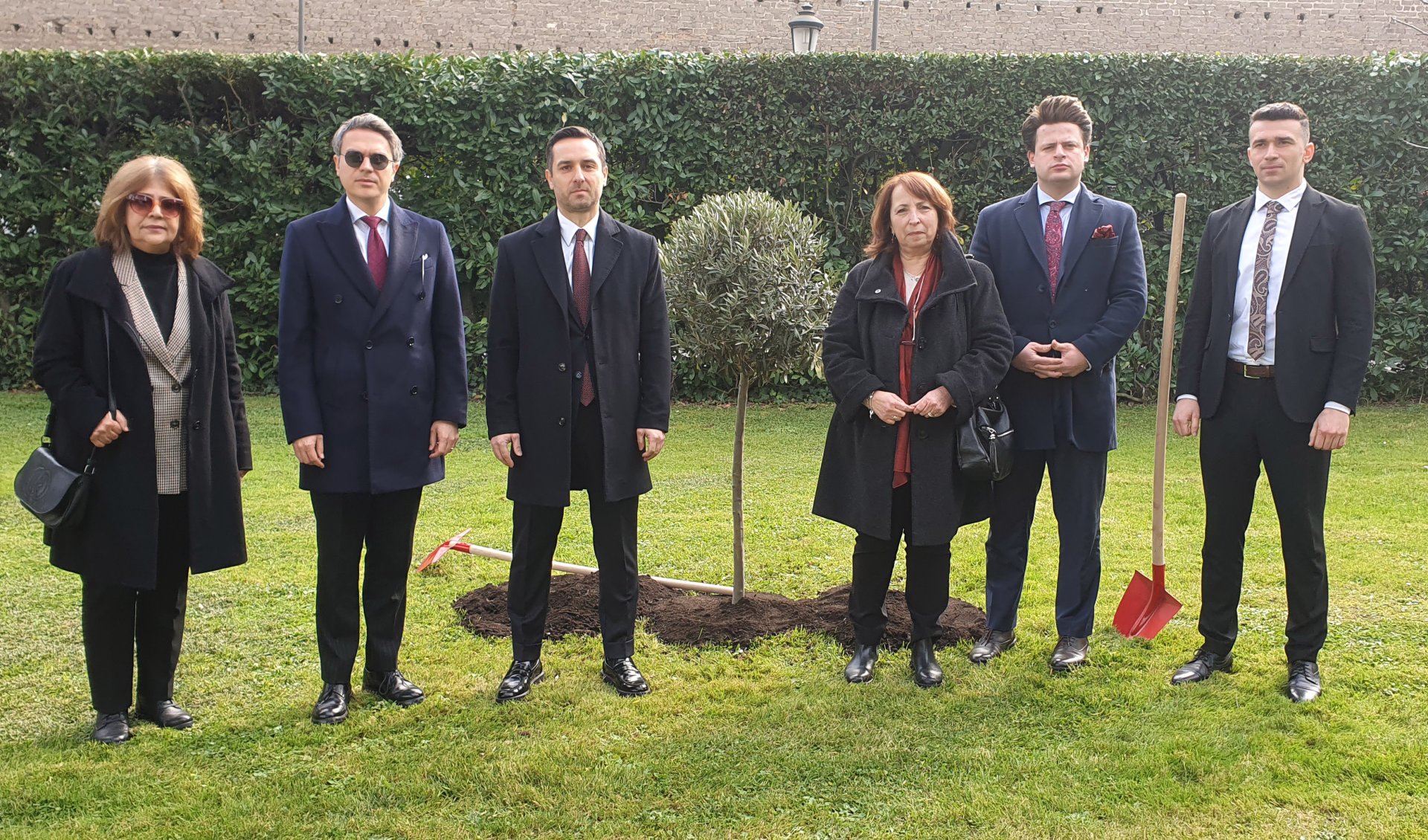 Türkiye’nin Vatikan Büyükelçisi Ufuk Ulutaş, sabah saatlerinde bahçelere gelerek beraberindekilerle bir zeytin ağacı dikti. Rönesans ve Barok dönemlerinde kurulmuş olan bahçelerdeki Lordes Mağarası’nın yakınlarına ağacın dikimi sırasında Büyükelçi Ulutaş’a, Başkatip Halil Atik, İkinci Katip Gülşen Önal ve Üçüncü Katip Kaan Erdoğdu ile büyükelçilik çalışanları eşlik etti.