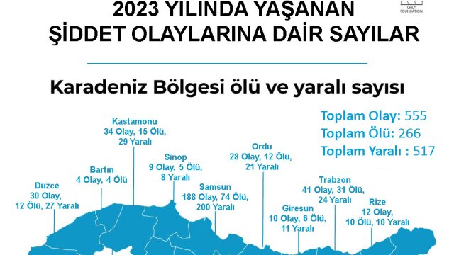 Karadeniz Bölgesi’ndeki 18 kentte 2023 yılında yaşanan 555 silahlı şiddet olayında 266 kişi öldürülürken 517 kişi de yaralandı.