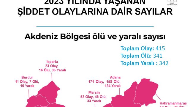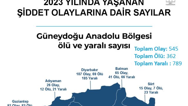 Bölgede; 2023’ün şiddet haritasında yer alan rakamlar şöyle: