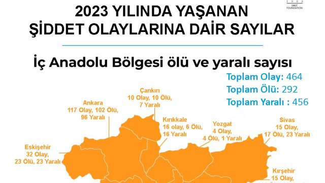 Bölgede ilginç olan; her yıl Konya en çok olayın yaşandığı il olarak birinci sırada olurken 2023 yılında bu ilde yaşanan olay sayısında yüzde 40’lık düşüş yaşandığı ve sıralamada ikinci sıraya indiği, başkent Ankara’nın ise bir önceki yıla göre yüzde 39’luk artışla birinci sıraya yerleştiği görülüyor…