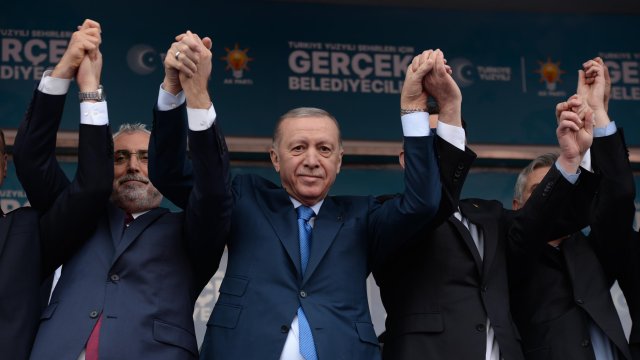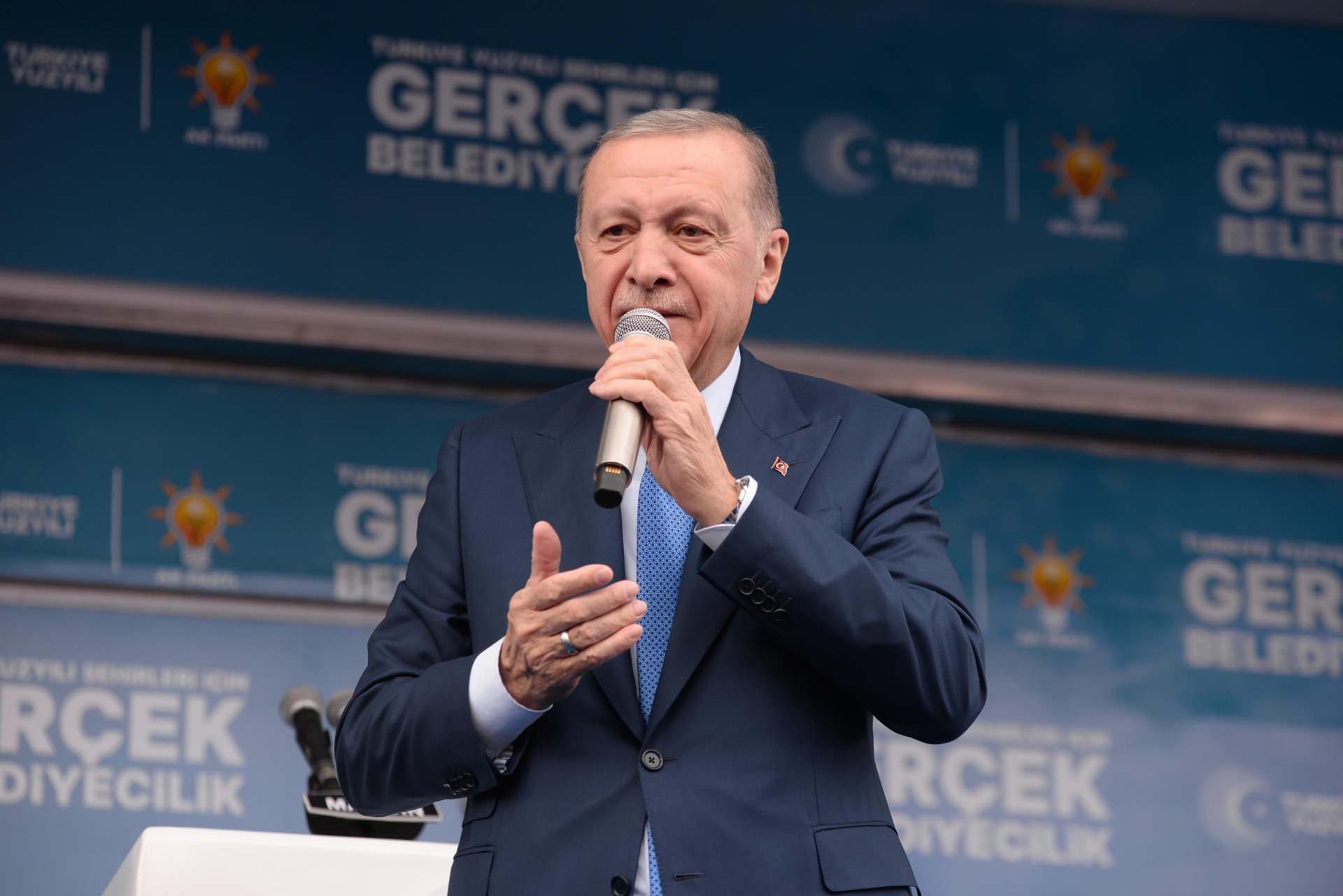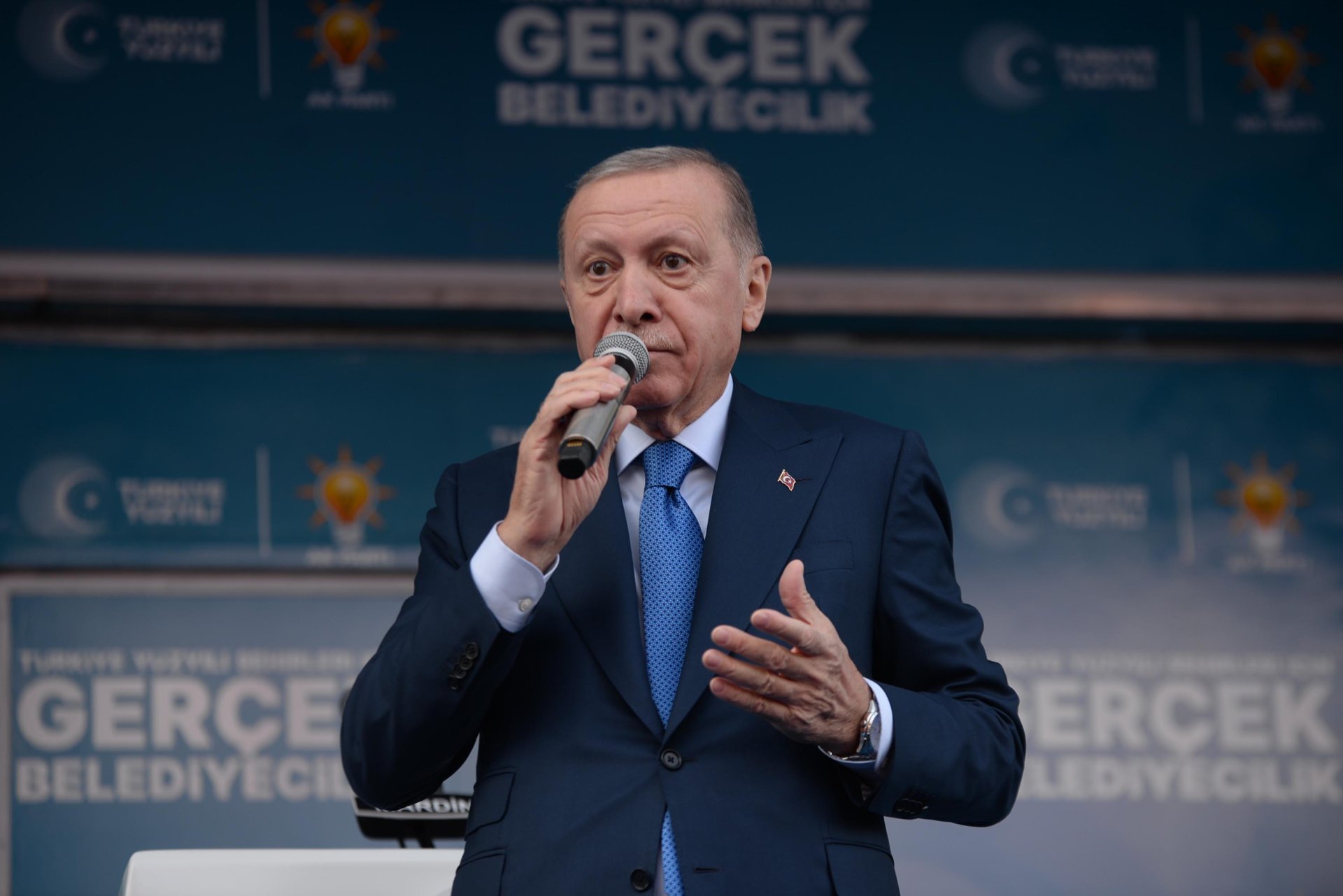 Cumhurbaşkanı Erdoğan, konuşmasının devamında, "Bir dönem AK Parti’nin ve şahsımızın gölgesinde yürüyüp de verdiğimiz mücadeleleri değersizleştirme peşinde koşanlara ‘veyl olsun’ diyoruz. Ben tüm vatandaşlarımızın sadece siyaseten değil, vicdanen de en doğru kararı vereceğine yürekten bekliyorum. Dış politikada nasılsak iç siyasette de bizim duruşumuz tavrımız bellidir. Kırmızı çizgilerimiz ve hassasiyetlerimiz gayet nettir. 21 yıldır emanetini taşıdığımız aziz milletimize asla yalan söyledik. Gizli, saklı işler çevirmedik. En netameli meselelerde dahi insanımıza karşı daime dürüst olduk. 15 Temmuz gecesi FETÖ’cü darbecilere karşı meydanlarda kurduğumuz Cumhur İttifakı’nda da bu ilkemiz değişmedi. Tıpkı daha önceki seçimler gibi, nerede ittifak olarak hareket ettiğimizi, nerede kendi adaylarımızla seçime girdiğimizi herkes biliyor, görüyor. Yani vatandaşın gözünden kaçırmaya çalıştığımız gizli, saklı işimiz yok. Cam gibi şeffafız. Bir de karşı tarafa bakıyorsunuz. Aman Allah’ım ortada ne şeffaflık var ne dürüstlük var. Ne de milli iradeye saygı var. ‘Kent uzlaşısı’ diye bir şey uydurdular. Kimin eli kimin cebinde belli değil. Belediyeleri DEM’le beraber yönetecekler ve DEM’siz yönetilecekler diye ikiye ayırmışlar. Bununla kalmamış DEM’lilerin kapısından girecekleri ve giremeyecekleri belediyeleri paylaşmayı ihmal etmemişler. Biri çıkıyor, ‘DEM’lileri kaldırımda görsem yolumu değiştiririm’ diyor, bir başkası çıkıyor, ‘DEM’e oy verenleri belediyeye almam’ diyor, ötekisi çıkıyor, ‘Size ne oluyor, biz anlaştık, belediyeleri beraberce yöneteceğiz’ diyerek, tutmayın küçük enişteyi edasıyla posta koyuyor. Tüm bu sıkıntılar yaşanırken genel başkanlık koltuğunda oturan şahsı ya kimse takmıyor ya da mikrofonu eline geçiren kendisine had bildiriyor. Yani ortada siyasi ahlak namına, dürüstlük namına, şeffaflık namına hiçbir şey yok. İnsanına aklına bunları görünce, ‘nereden baksan tutarsızlık, nereden baksan ahmakça’ diyen o meşhur şarkının sözleri geliyor. Gerçekten de tutarsızlık, ilkesizlik ve siyasi ahlaksızlık bunların adeta paçalarına akıyor. CHP’de tüm bunlar yaşanırken madalyonun öbür tarafına bakıyorsunuz orada da durum çok vahim. Lafa geldiğinde Kürtler adına konuşup, onları istismar edenler bu dalavereler karşısında çıkıp bir tek cümle kurmuyor, kuramıyor. Seçmenlerinin haysiyetini bile savunamayacak kadar acziyet içindeler. Türkiye son bir haftadır artık geride kaldığını düşündüğümüz tek parti faşizminin, en ilkel haline şahit oluyor. Ama kendilerince Kürt kardeşlerimizin iradesine ipotek koyanlar, sadece havaya bakıp ıslık çalıyor. Söz konusu CHP olunca, kuyruklarını kıstırıp olay yerinden uzaklaşmayı seçtiler. Soruyorum size. Son 21 yılda attığımız her demokratikleşme adımına karşı çıkanlar bunlar değil miydi? Her türlü engellemelere rağmen hak ve özgürlükler konusunda sessiz devrim gerçekleştiren bize demediklerini bırakmayanlar bunlar değil miydi? Yasakçı zihniyete karşı verdiğimiz mücadeleye rağmen sizinle aramızı bozmaya çalışanlar bunlar değil miydi? Şimdi aynı kesimler 2024 yılında tek partinin faşist ruhunu hortlatan CHP karşısında 3 maymunu oynuyor. Bunun takdirini, sırf kimlik siyaseti sebebiyle DEM’e oy vermeyi düşünen vatandaşlarımın en iyi şekilde yapacağına inanıyorum" diye konuştu.
