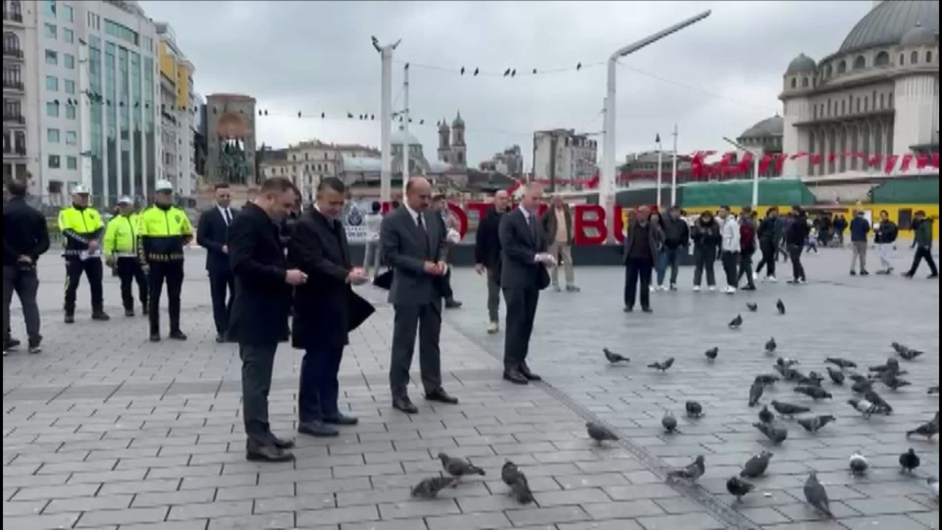 Taksim’de güvercinlere yem atan vali ve beraberindekiler Taksim’den ayrıldı.