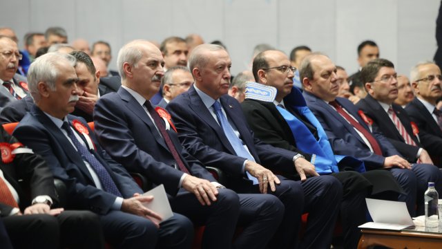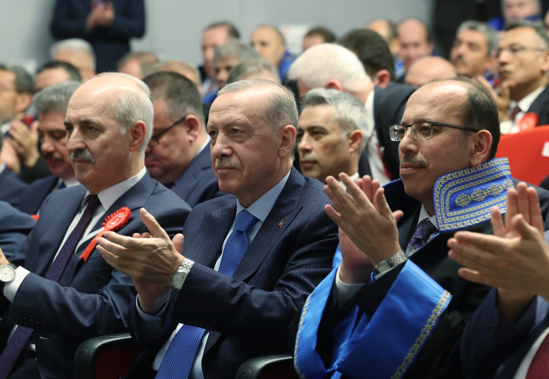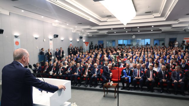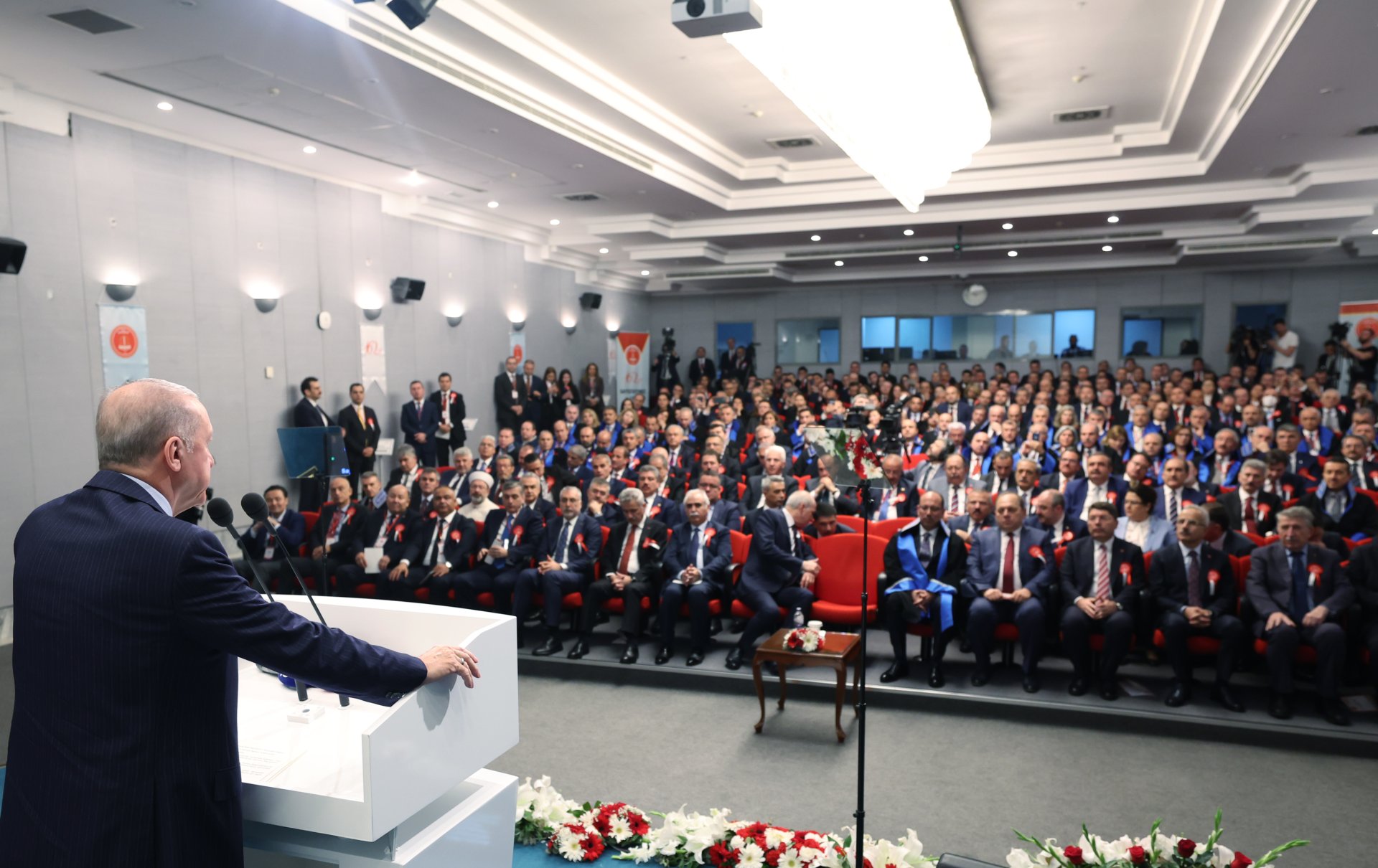 Erdoğan, 'Türkiye Yüzyılı'nın kilometre taşlarından birisinin anayasal demokrasinin yeni ve sivil bir anayasayla güçlendirilmesi ve kurumsallaştırılması olduğuna işaret ederek, "İktidarda olduğumuz dönemde yaptığımız çeşitli anayasa değişiklikleriyle anayasanın demokratikleşmesine yönelik çok kritik adımlar attık. Cumhurbaşkanlığı Hükümet Sistemi, millet ile devlet arasındaki bağları tahkim etti. Yürütmenin demokratik meşruiyetini sağlamlaştırdı. Yeni hükümet sistemi sayesinde yıllarca en büyük sorunumuz olan siyasi belirsizlik ortadan kalktı. Yönetimde güven ve istikrar teşhis edildi. Bundan tam 1 sene önce 28 Mayıs tarihinde yapılan Cumhurbaşkanı seçiminin ikinci turunda millet kararını verdi. Ülkeyi kimin yöneteceği hiçbir şüpheye yer bırakmayacak şekilde belli oldu. Türkiye'ye vakit ve enerji kaybettiren tartışmaların, siyaset kurumuna güveni zayıflatan bir seviye koalisyon görüşmelerinin hiçbiri yaşanmadı. Milletimiz seçim gecesi sandıkların açılması ve sonuçların belli olmasıyla birlikte kaldığı yerden işine, gücüne, normal mesaisine döndü. Yıllarca belirsizlik sebebiyle ekonomide, demokraside ve güvenlikte bedel ödeyen ülkemiz bu açıdan bunun tarihi bir kazanım olduğunu gördü. Bu kazanımın korunması gerektiğine inanıyoruz. Elbette sistemin işleyişinde pürüzler çıkabilir. Bunlar gayet doğaldır. Bu pürüzleri gidererek sistemin daha verimli, başarılı ve etkin çalışmasını sağlamak siyaset kurumunun uhdesindedir. Tecrübelerimizin ışığında sistemi iyileştirecek her türlü adımı atmaya hazır olduğumuzu söyledik, söylüyoruz. Eski sisteme dönüş bir polemiktir. Bu polemiğin ülkeye ve millete herhangi bir hayrının dokunmayacağı kanaatindeyiz. Eskiye öykünmek yerine önümüze bakmanın, geleceğe odaklanmanın istikbali inşa etmenin mücadelesini vermemiz şart. Yeni anayasa meselesi de gelecek vizyonumuzun bir parçasıdır. Dün de ifade ettim; Türkiye'yi darbe anayasasından kurtarmak bizim için milli bir görevdir. Evlatlarımıza çağdaş normlara uygun, kuvvetler arasında doğru denge kuran, demokratik hukuk devletini esas alan, siviller eliyle yapılmış yeni bir anayasa borcumuz vardır. Önümüzdeki dönemde bu borcu ödemek için çalışmaya devam edeceğiz. Türkiye'nin yeni anayasaya kavuşması için kuşatıcı, uzlaşmacı ve yapıcı tavrımızı son raddeye kadar muhafaza edeceğiz" dedi.
