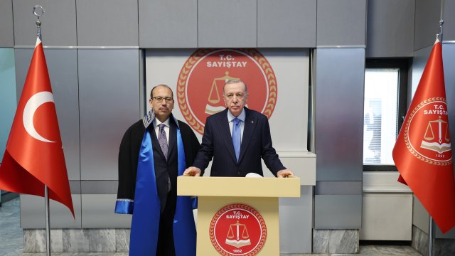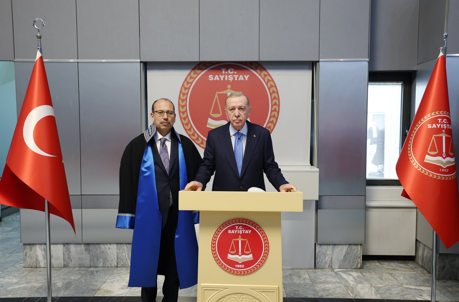 Erdoğan, bu hassasiyetlerinin yeni bir nişanesi olarak önceki hafta kamuda verimlilik ve tasarruf paketini paylaştıklarını hatırlatarak, "Tasarruf kültürünün, toplumumuzda yaygınlaştırılmasına önem veriyoruz. Türkiye başkaları gibi sınırsız petrolü, altını, elması, doğal gazı olan bir ülke değildir. Üreterek, çalışarak, didinerek ayakta kalan bir ülkeyiz ve milletiz. Elimizdeki imkanları, verimli ve etkin şekilde değerlendirmekten başka bir seçeneğimiz bulunmuyor. Kamuda tasarrufu sadece harcamaların kısılması olarak göremeyiz. Mali anlamda daha az kaynak kullanmak elbette bunun bir unsurudur. Ama bununla birlikte mevcut kaynakların verimli hizmetlere yöneltilmesi ve hizmetlerin mümkün olan en düşük bütçeyle yapılması da önemlidir. Daha az kaynakla, daha başarılı hizmet verilmesini hedefliyoruz. Kamu kaynaklarını en ekonomik şekilde kullanırken, kurumlarımızın iş süreçlerinin yeniden düzenlenmesine, teknolojinin en üst düzeyde kullanılmasına, personelin en verimli şekilde istihdamına, idari yapıların yeniden gözden geçirilmesine kadar birçok boyutu göz önünde tutuyoruz. Sayıştay'ın kurumlarımızı hem bu açıdan değerlendirmesini hem de kurumlarımızın ufkunu açacak öneriler geliştirmesini önemsiyoruz. Anayasamıza göre yargı yetkisiyle donatılmış denetim organı olan Sayıştay'ın konumunu çıkardığımız kanunlarla daha da güçlendirdik. Sivil, askeri, tüm kamu kurumlarını, kamu iktisadi teşekküllerini, belediye şirketleri dahil kamu kaynağı kullanan her kuruluşu Sayıştay Denetimi kapsamına aldık. Denetim alanı ve yetkisi genişleyen Sayıştay, bizim dönemimizde modern hukuk devletlerindeki yüksek denetimin tüm unsurları ve metotlarına sahip oldu. Başkaları yıllardır bunun sadece lafını ve istismarını yaparken, Sayıştay'ı hak ettiği konuma yine biz getirdik. Sayıştay'ımızın işleri doğru, etkin, verimli ve hızlı biçimde yürütülmesine, vatandaşın devlete olan güveninin artması ve kurumların yıpratılmadan güçlendirilmesine yönelik faaliyetlerini takdirle karşılıyoruz. Başkanlığımızın Türk Cumhuriyetleri ve gönül coğrafyamızda yer alan diğer Sayıştay'larla iş birliğini ilerletmesinden de memnuniyet duyuyoruz" dedi.