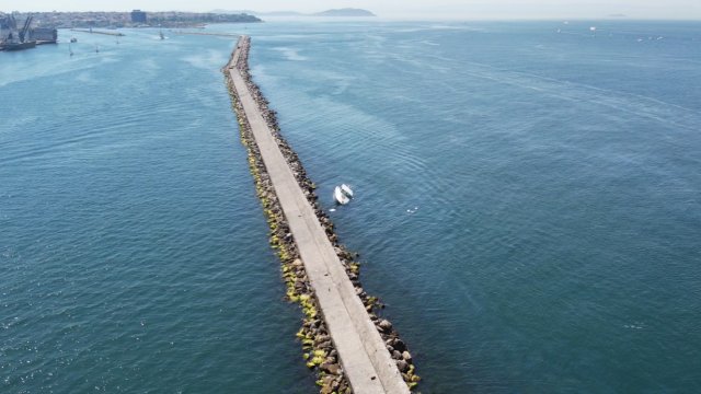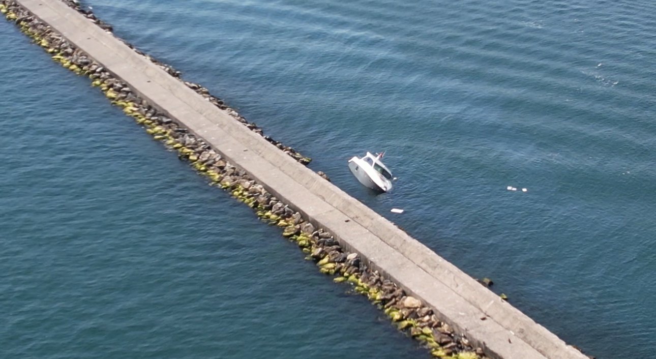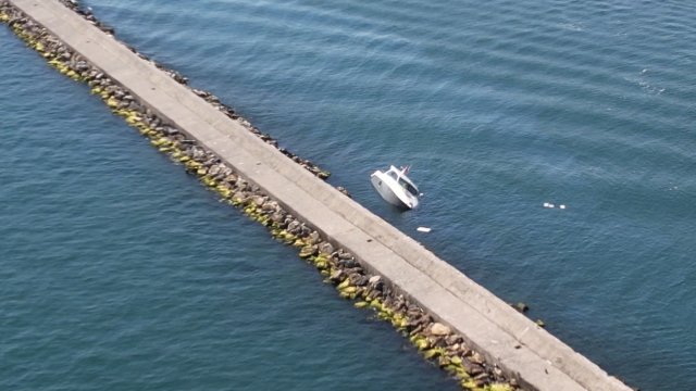 Haydarpaşa açıklarındaki Mendireğe çarpıp 10 kişinin kurtarıldığı tekne, drone ile havadan görüntülendi. Görüntülerde, teknenin kayalıklara oturduğu, bir kısmının ise suyun altında kaldığı görünüyor. Teknenin sürüklenmemesi için halatlarla bağlantı yapıldığı görüldü.