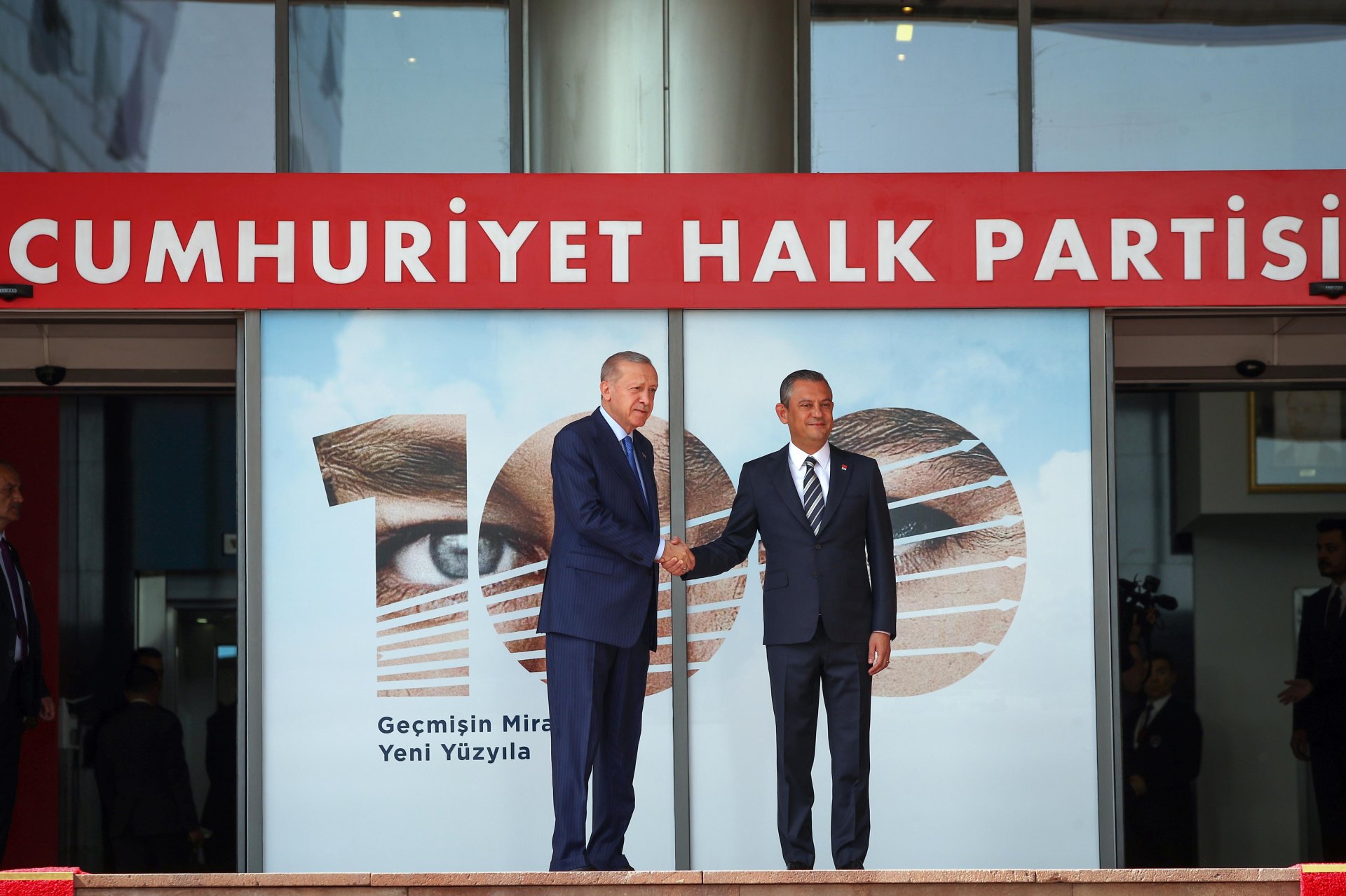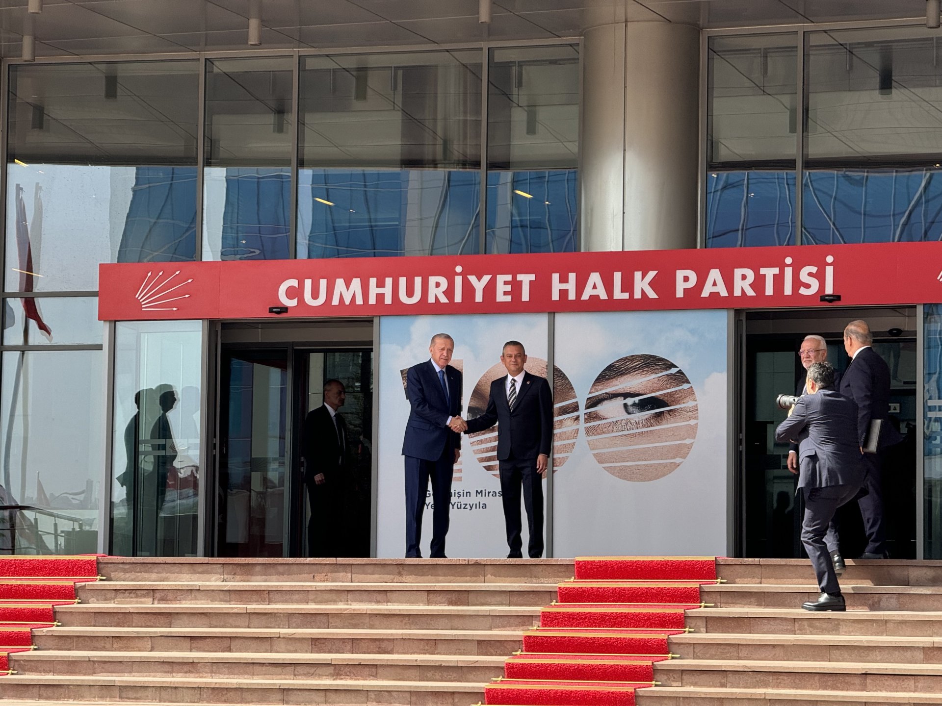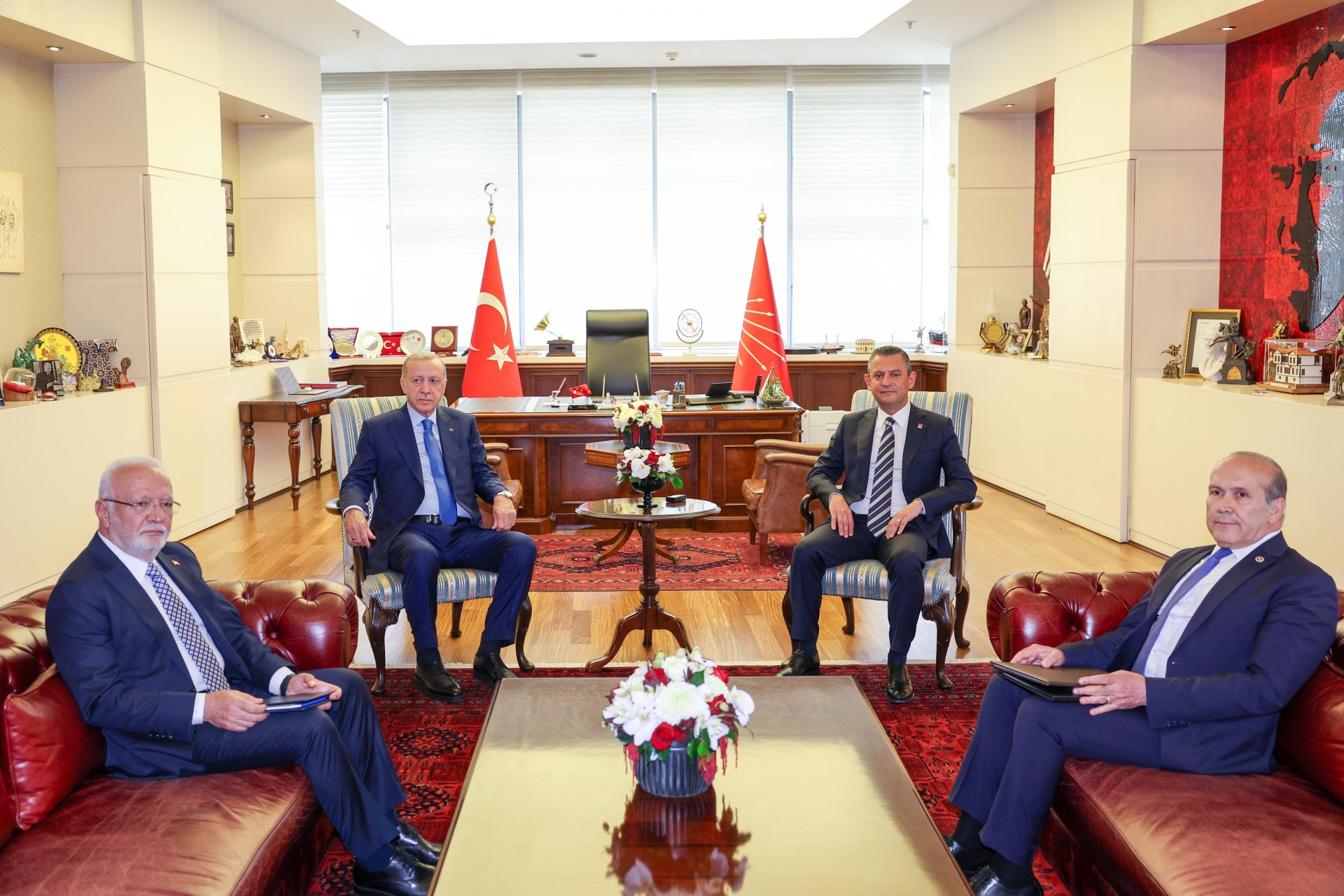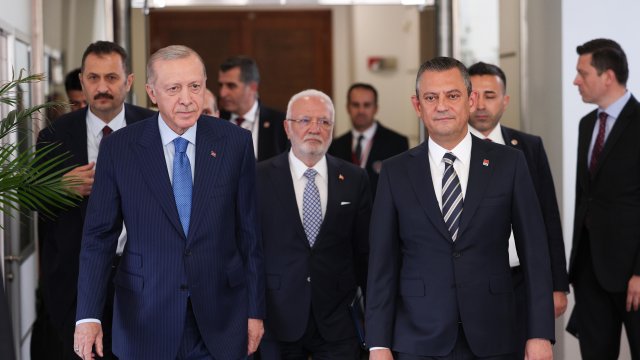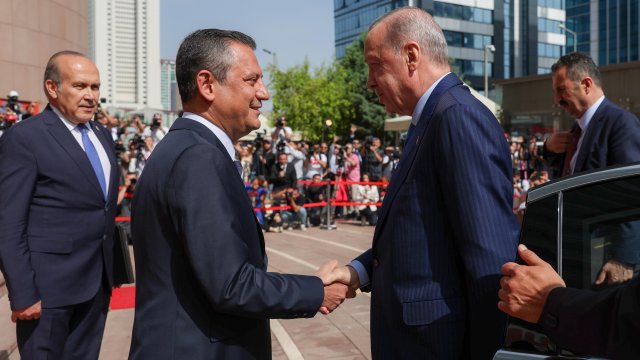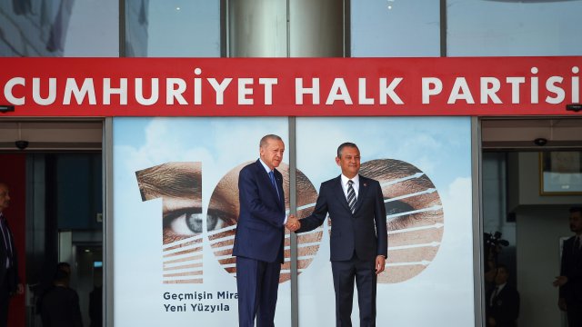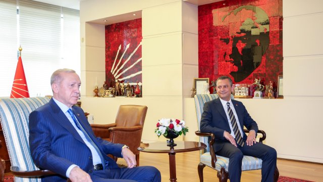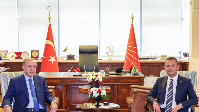 CHP Genel Başkanı Özgür Özer, 31 Mart yerel seçimlerinin ardından 2 Mayıs'ta AK Parti Genel Merkezi'nde Cumhurbaşkanı Erdoğan'ı ziyaret etti. Siyasette normalleşme sürecinin başlangıcı olarak görülen ziyaretin ardından Erdoğan, Özel'e iadeiziyaret bulundu. Erdoğan'ın ziyareti öncesinde CHP Genel Merkezi önüne Cumhurbaşkanlığı forsu bulunan bayrak asıldı. Özel, Erdoğan'ı genel merkez girişindeki merdivenlerde karşıladı. Erdoğan'a AK Parti Genel Başkan Vekili Mustafa Elitaş, Özel'e ise CHP İstanbul Milletvekili Namık Tan eşlik etti. Erdoğan ve Özel, genel merkez önünde tokalaşarak, basın mensuplarına poz verdi. Ardından Özel'in 12'nci kattaki makam odasında gerçekleşen görüşmeye geçildi. Makam odasındaki görüşmeden de fotoğraf paylaşıldı. Görüşme saat 16.05'te başladı. Görüşme sürerken, Erdoğan 2006'da başbakanlığı dönemindeki ziyaretinden 18 yıl sonra CHP'yi ziyaret etmiş oldu.