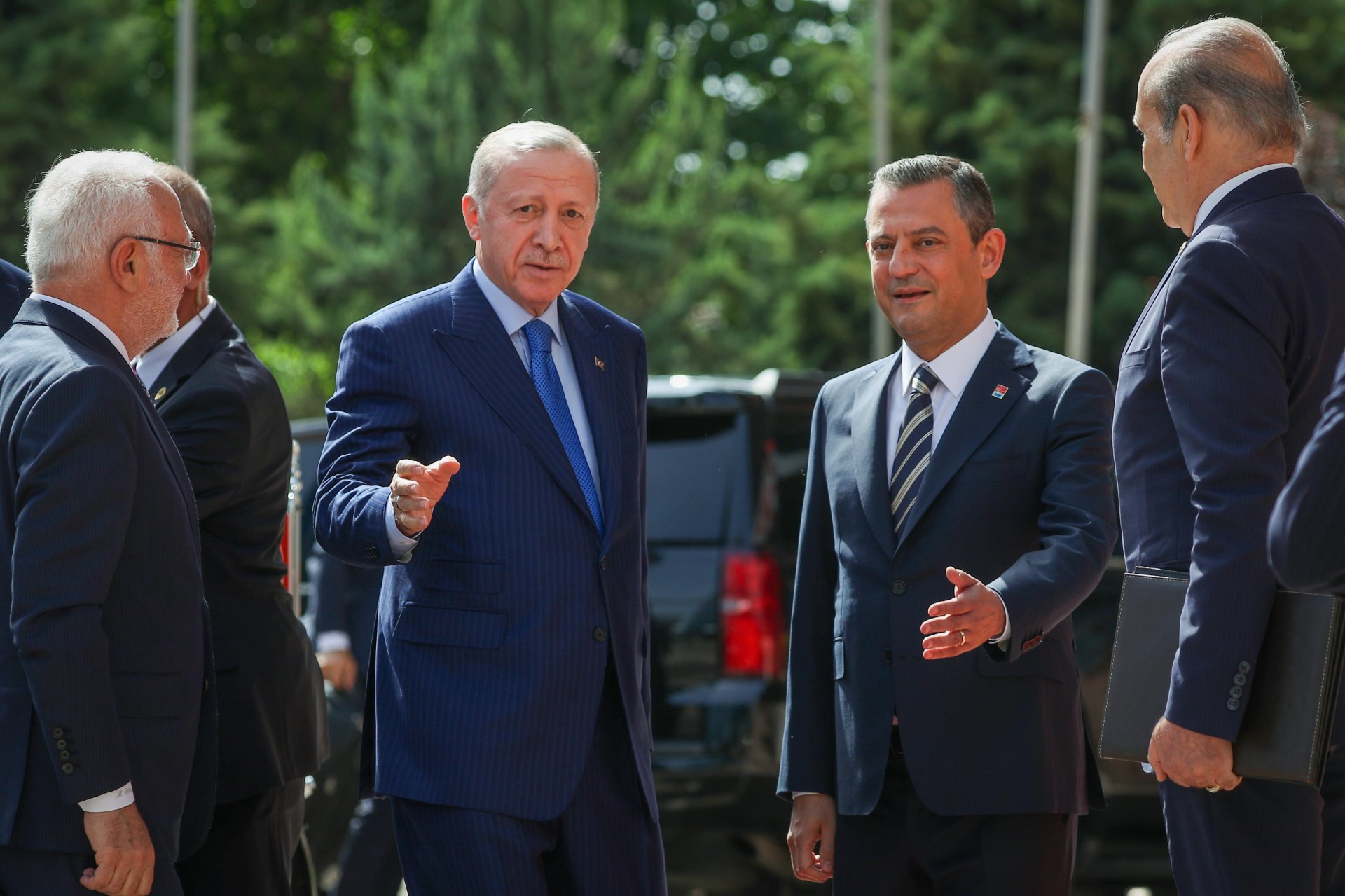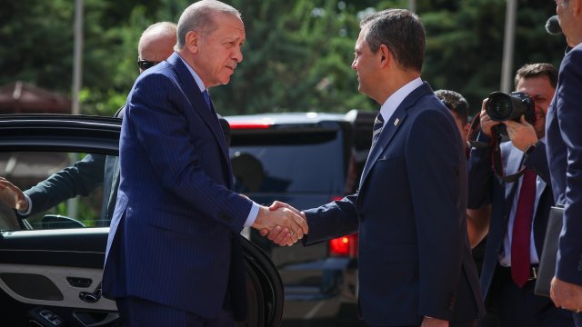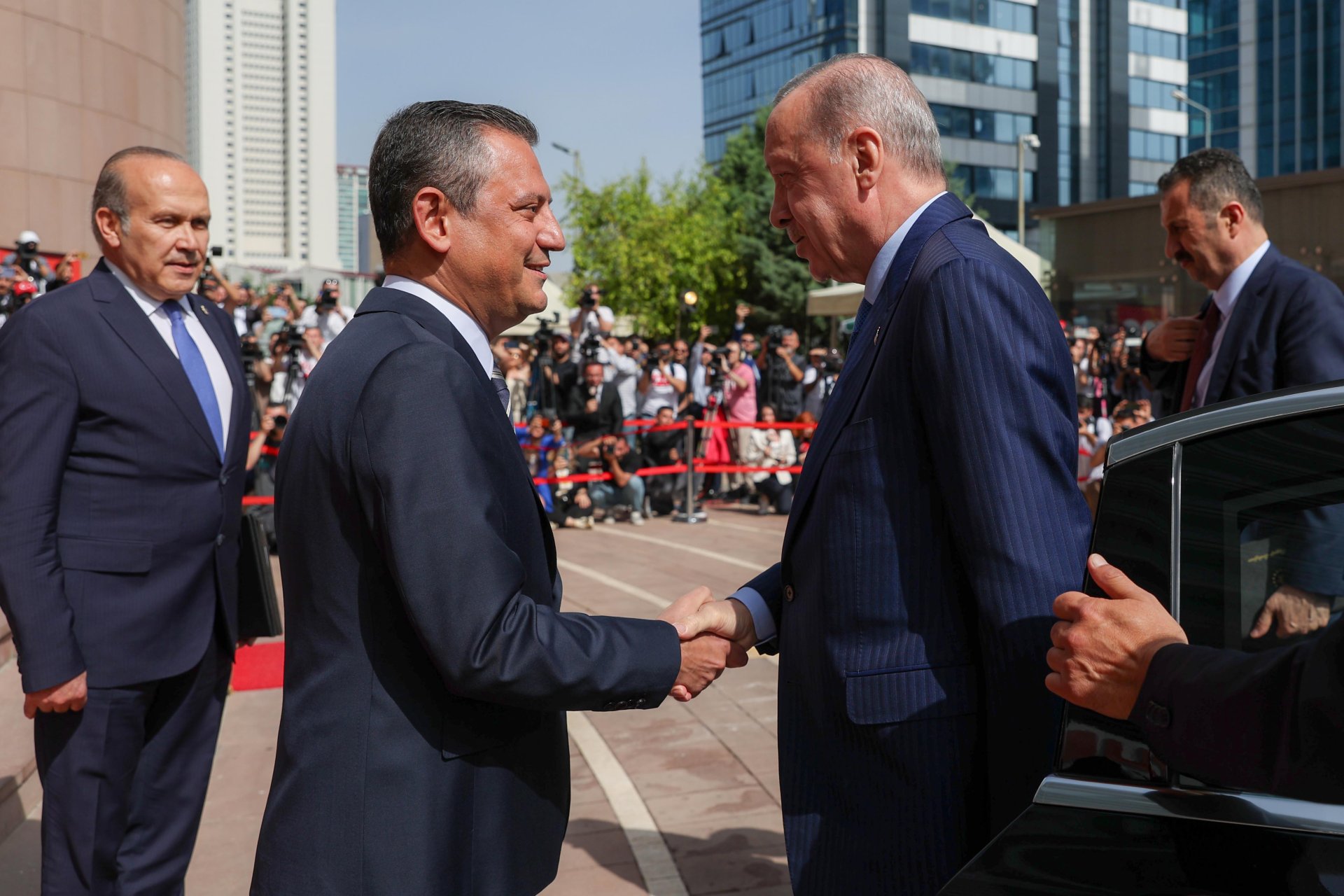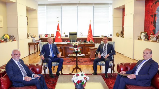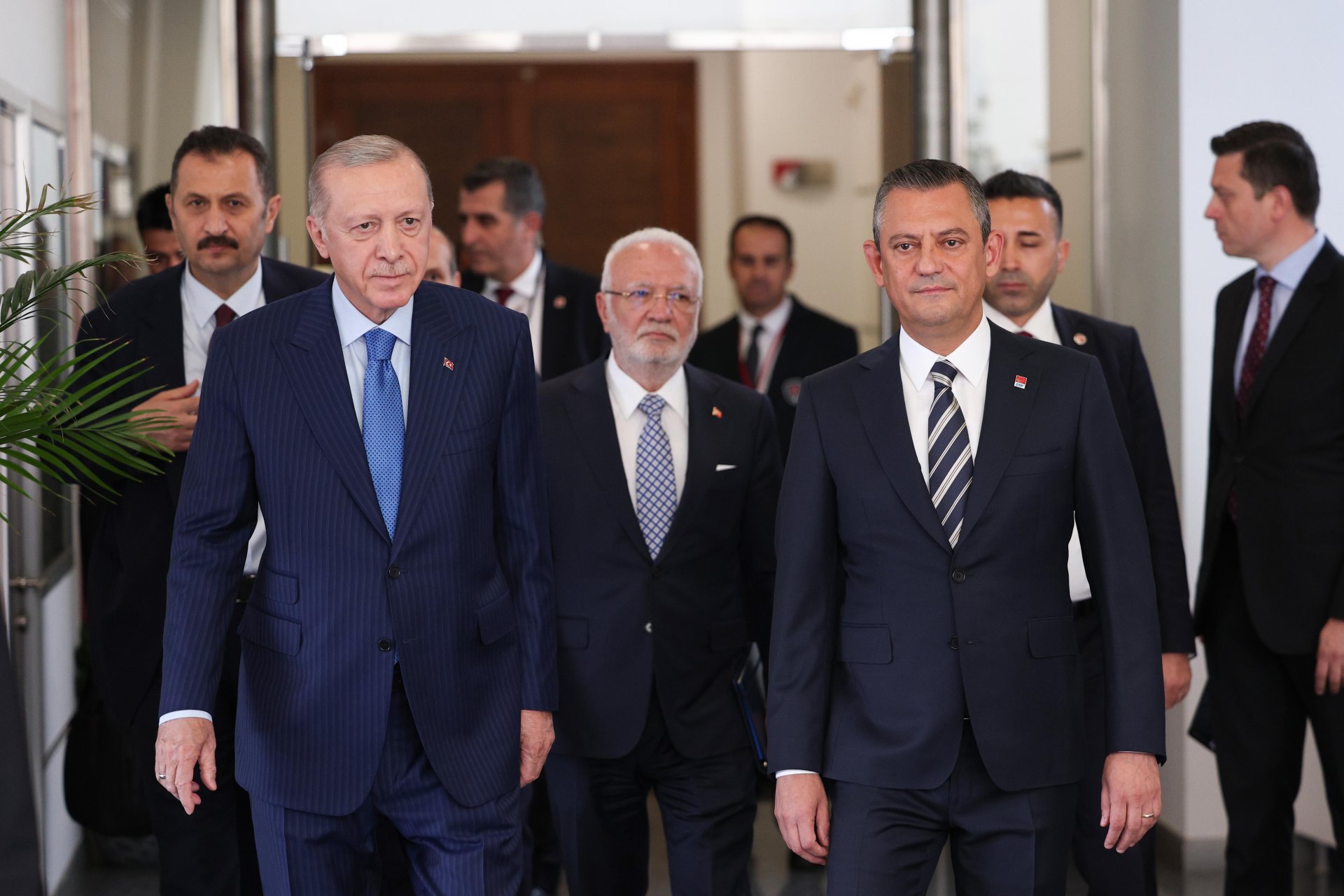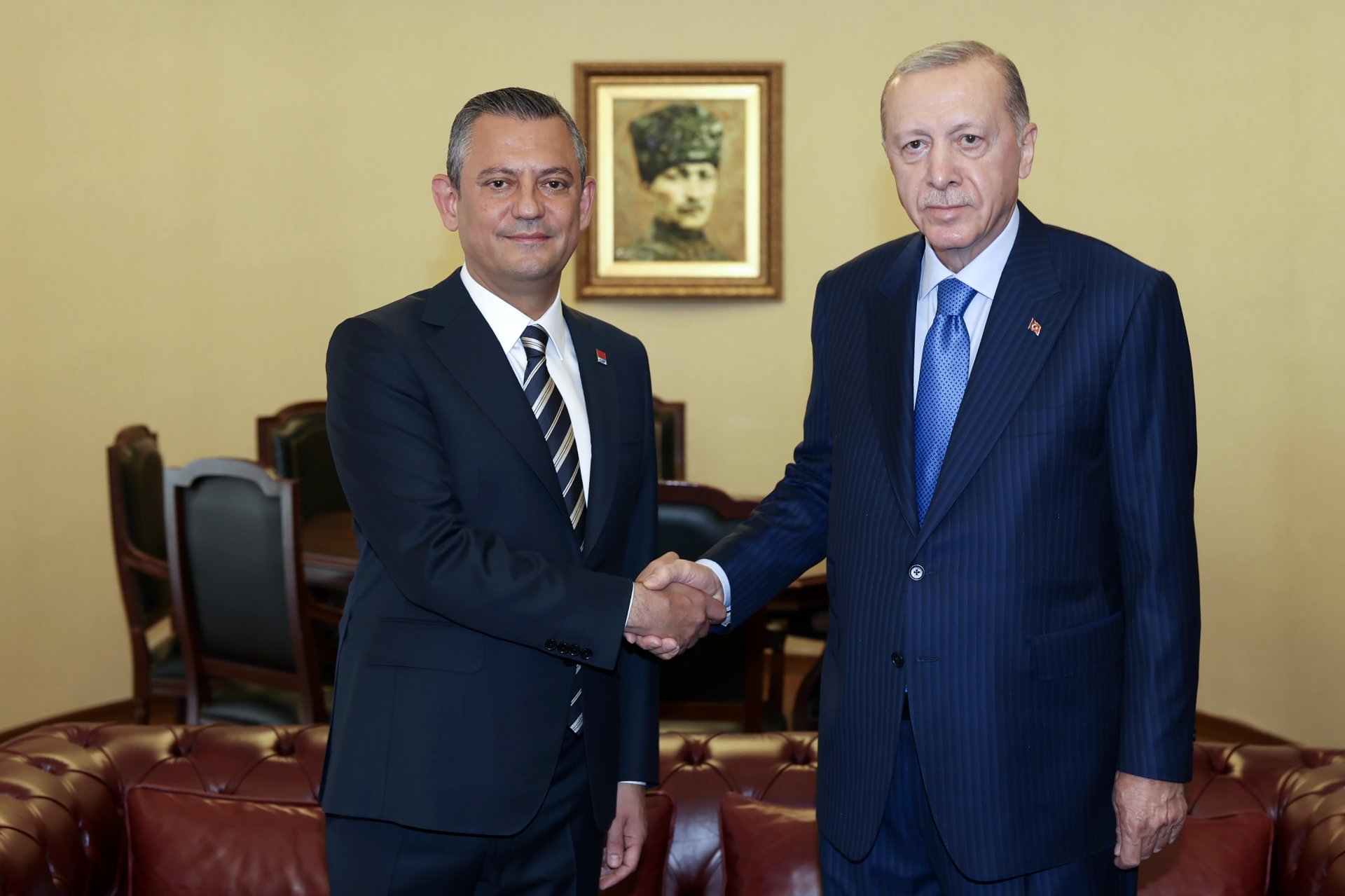 CHP Genel Başkanı Özgür Özer, 31 Mart yerel seçimlerinin ardından 2 Mayıs'ta AK Parti Genel Merkezi'nde Cumhurbaşkanı Erdoğan'ı ziyaret etti. Siyasette normalleşme sürecinin başlangıcı olarak görülen ziyaretin ardından Erdoğan, Özel'e iadeiziyaret bulundu. Erdoğan'ın ziyareti öncesinde CHP Genel Merkezi önüne Cumhurbaşkanlığı forsu bulunan bayrak asıldı. Özel, Erdoğan'ı genel merkez girişindeki merdivenlerde karşıladı. Erdoğan'a AK Parti Genel Başkan Vekili Mustafa Elitaş, Özel'e ise CHP İstanbul Milletvekili Namık Tan eşlik etti. Erdoğan ve Özel, genel merkez önünde tokalaşarak, basın mensuplarına poz verdi. Ardından Özel'in 12'nci kattaki makam odasında gerçekleşen görüşmeye geçildi. Makam odasındaki görüşmeden de fotoğraf paylaşıldı. Görüşme saat 16.05'te başladı. Görüşme sürerken, Erdoğan 2006'da başbakanlığı dönemindeki ziyaretinden 18 yıl sonra CHP'yi ziyaret etmiş oldu.