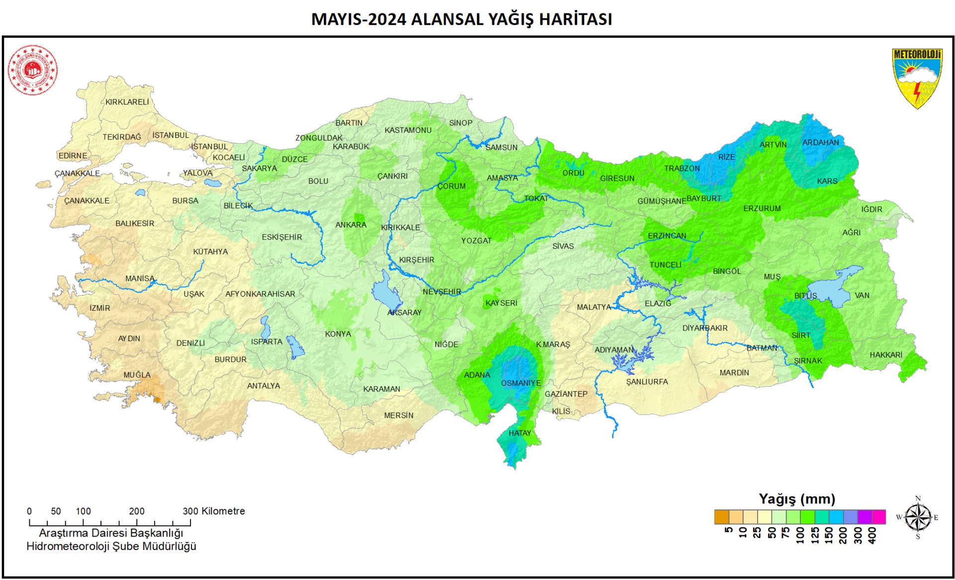 2024 Yılı Mayıs Ayı Alansal Yağış raporuna göre, Türkiye geneli mayıs ayı yağışı normalinin ve geçen yıl mayıs ayı yağışının üzerinde gerçekleşti. Bu yıl mayıs ayı yağışı 70,3 mm, mayıs ayı normali (1991-2020) 52,7 mm, geçen yıl mayıs ayı yağışı 66,8 mm. Yağışlarda normaline göre yüzde 33 ve geçen yıl mayıs ayı yağışlarına göre yüzde 5 artış meydana geldi.