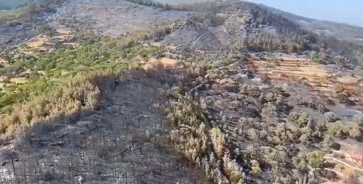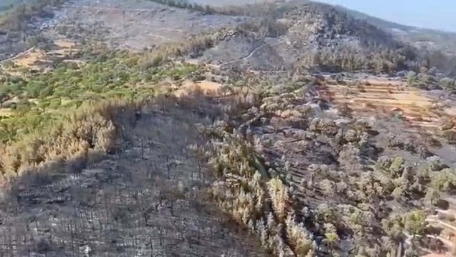 Yangında ilk belirlemelere göre, 2 bin hektar alanın zarar gördüğü belirtildi. Yangını çıkış nedeni araştırılırken, ekiplerin zarar tespiti için çalışmaları sürüyor