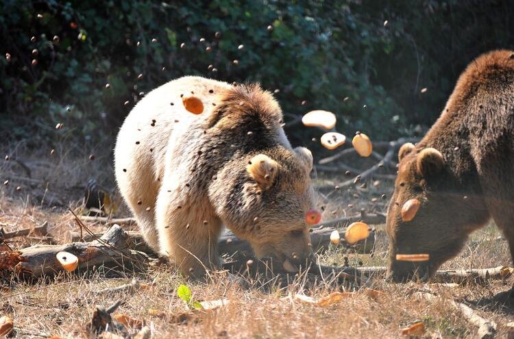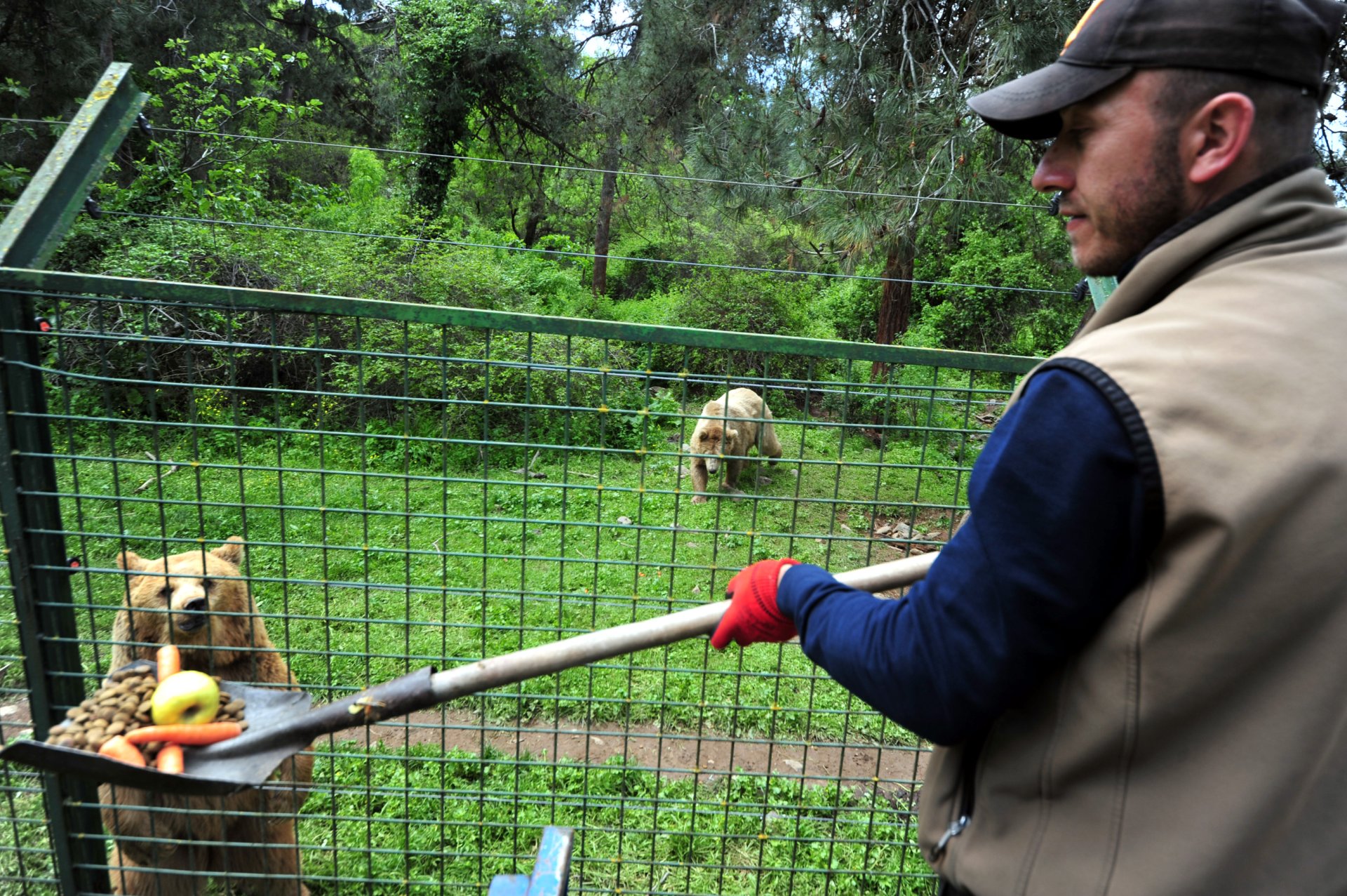 Kış uykusundan uyanan ayıların artan protein ve kalori ihtiyacını karşılamak için özel ekmeğin yanında ek gıda takviyesi de uyguladıklarını belirten Azizcan Sezer, "Merkezimizde bulunan 71 ayı kış uykusundan uyandı. Kış uykusu dönemi boyunca hayvanlar, vücutlarında depolamış oldukları yağ rezervlerini kaybettiler. Kış uykusu nisan ayında bitti ve hayvanlar kış uykusundan çıktılar. Şu an oldukça iştahlı ve açlar. Biz de artan protein ve kalori ihtiyaçları neticesinde, hayvanlarımızı yüksek kalorili ve yüksek proteinli gıdalarla beslemeye başladık. Hayvanlarımıza vermiş olduğumuz günlük rasyon miktarını değiştirerek, vermiş olduğumuz gıda çeşitliliğini arttırdık. Şu an hayvanlarımıza elma, armut, ayva, havuç, salatalık, tavuk, balık pelet yem ve ekmek olmak üzere, geniş bir yelpazede besin vermekteyiz" dedi.