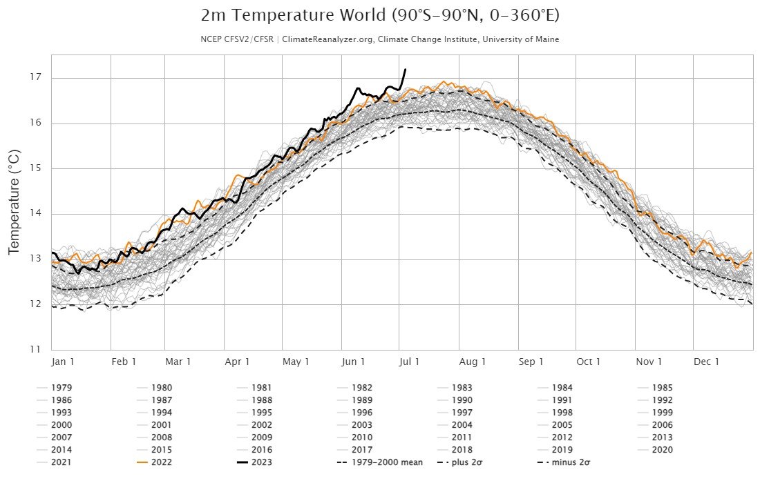 NCEP, dünya hava sıcaklığı ortalamasının baz alındığı verilere göre eski rekorun 2016 yılındaki Ağustos ayında 16.92 C olarak tespit edildiğini vurgulayıp 3 Temmuz Pazartesi gününün, hava sıcaklığında rekor kırarak 17.01 C olduğunu duyurdu. Dünya ortalama hava sıcaklığı, en yüksek ve en düşük sıcaklık toplanıp ikiye bölünerek elde edilmektedir.