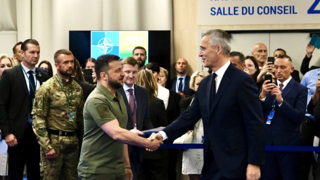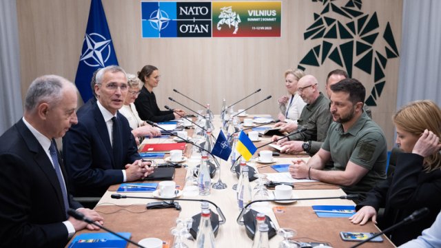 NATO Liderler Zirvesi kapsamında Litvanya’nın başkenti Vilnius’ta bulunan NATO Genel Sekreteri Jens Stoltenberg, zirvenin ikinci gününde, NATO-Ukrayna Konseyi'nin açılış toplantısı öncesinde Ukrayna Devlet Başkanı Volodimir Zelenski ile bir araya geldi. Görüşme sonrası Stoltenberg ve Zelenski ortak basın toplantısı düzenledi.