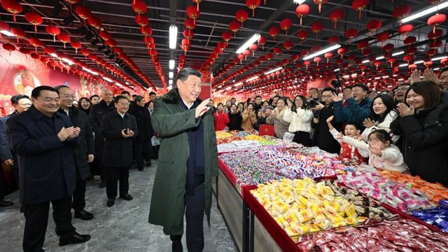 Çin Devlet Başkanı Şi Cinping, Çin’in kuzeydoğusunda yer alan Liaoning eyaletinin merkezi Shenyang kentinde, Dadong alışveriş merkezinde incelemelerde bulundu ve Bahar Bayramı sırasında piyasa tedariki hakkında bilgi edindi. Cinping çocuklara, “Hayatlarınız şeker gibi tatlı olsun” dileğinde bulundu.