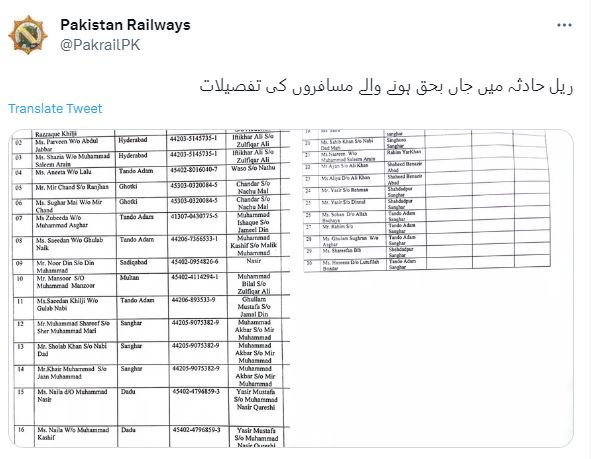 Ravalpindi’den Karaçi’ye sefer yapan 19 vagonlu yolcu treni Navabşah kenti yakınlarında raydan çıktı. Pakistan Demiryolları Bakanlığı, kazada hayatını kaybedenlerin sayısının 30’a, yaralı sayısının ise 64’e yükseldiğini duyurdu. Kazanın nedenine ilişkin henüz açıklama yapılmadı.